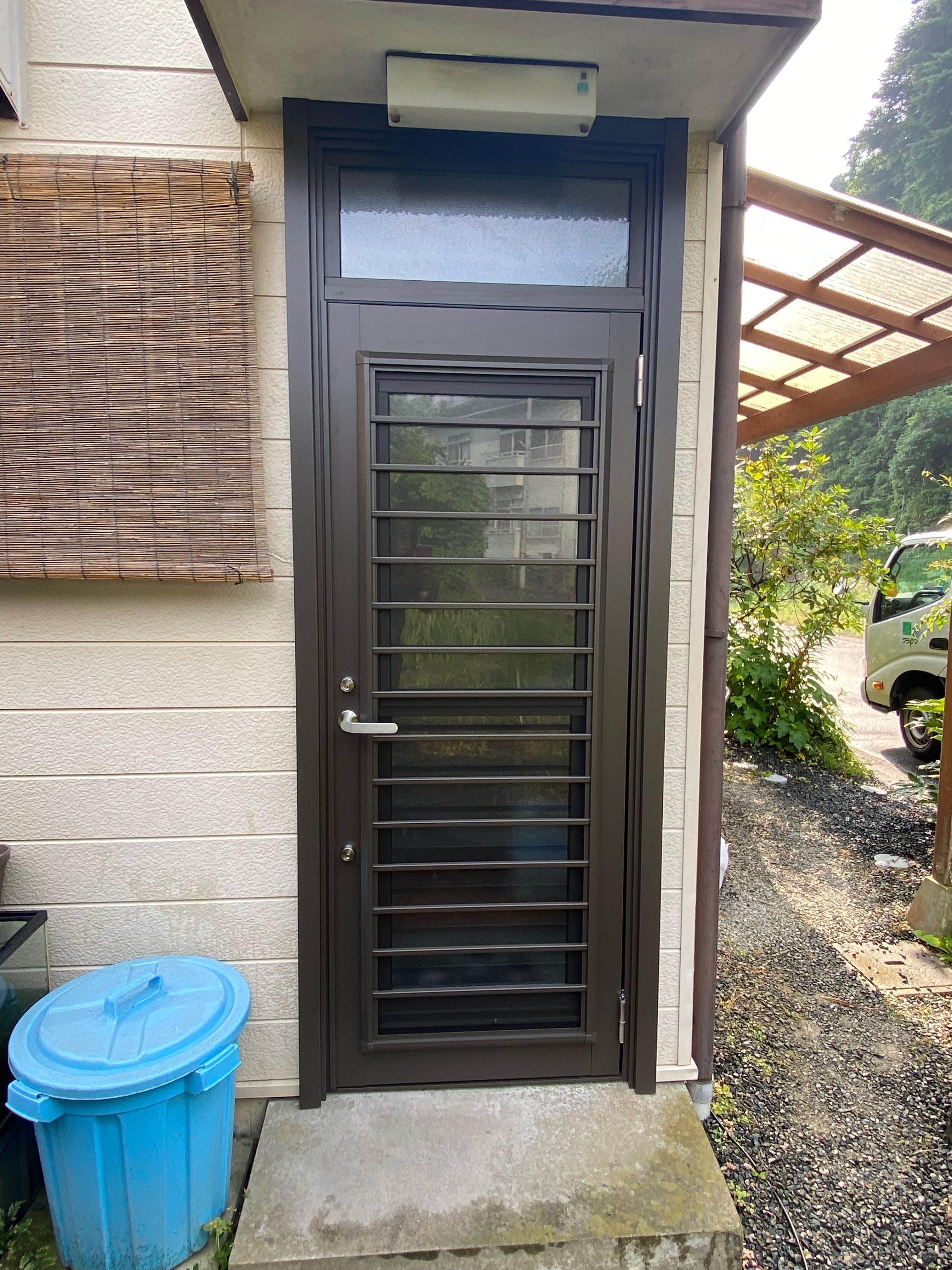カギを閉めたまま網戸になる勝手口にしたい。とお電話をいただきました。 工事は1日で終わります。外壁を壊したりと大掛かりな工事はしません。 お客さまには喜んで頂きました。