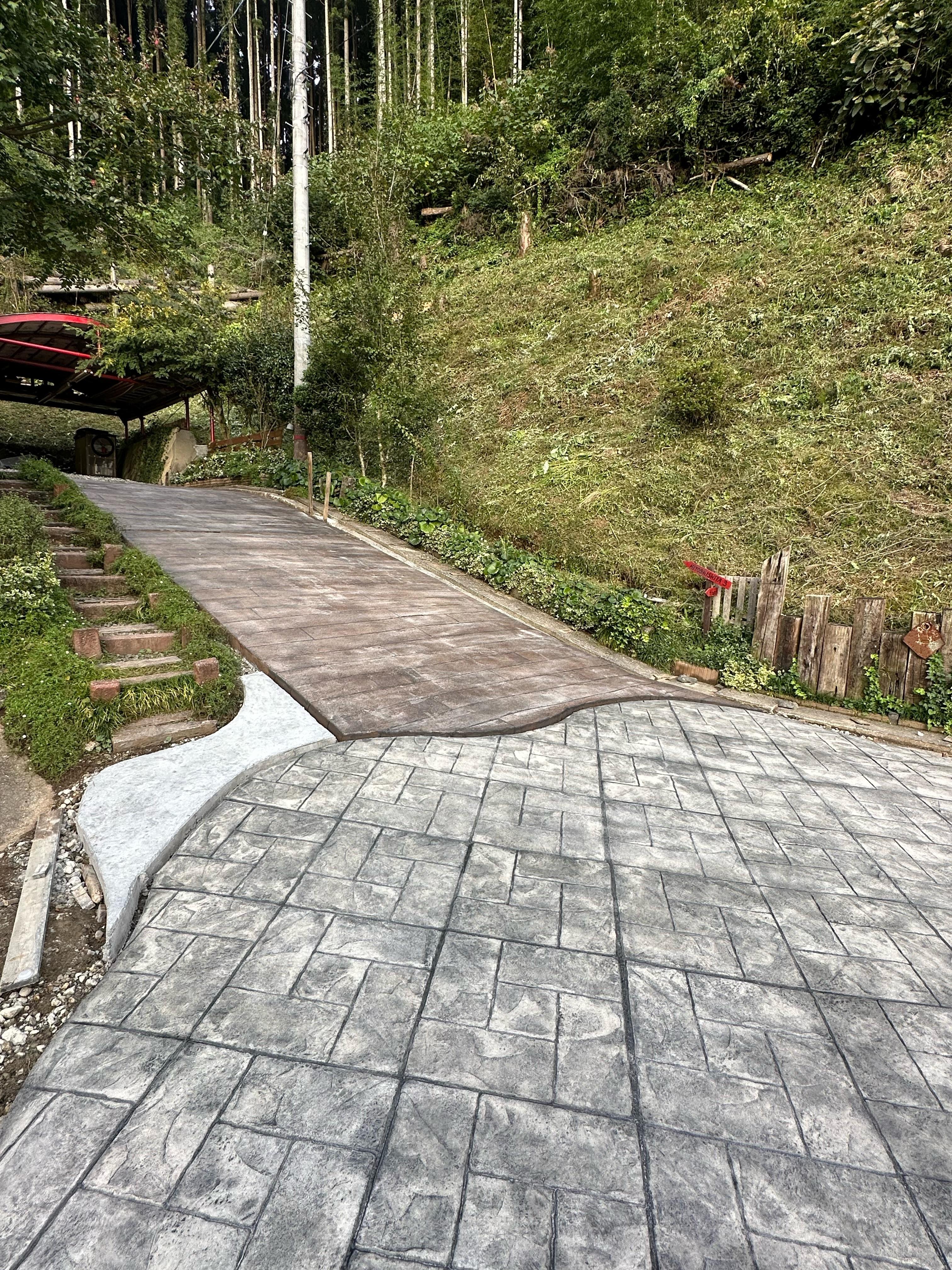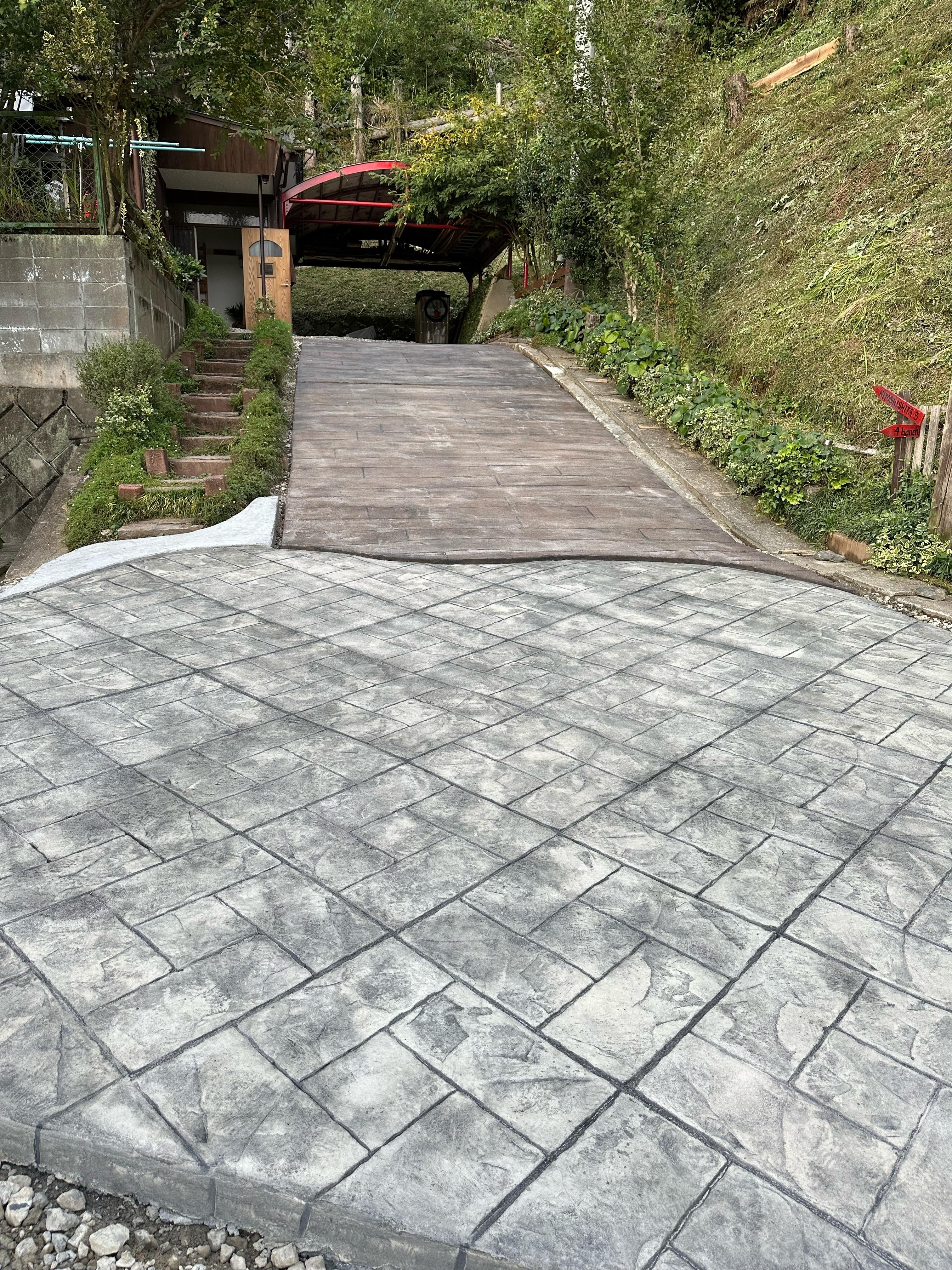 クラフト得意の、MATスタンプコンクリート施工。 今回は2パターンの柄を使い完成です。 勾配のスタンプは難易度が高いです。 すべり止め加工もしっかりしてあります。 お手入れいらずでオシャレなMATスタンプコンクリートをオススメします。