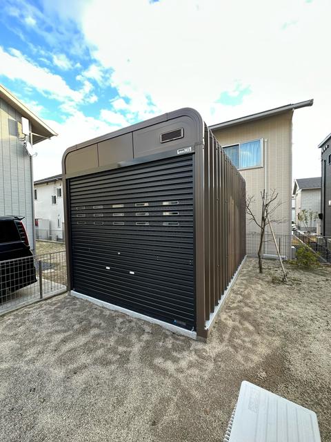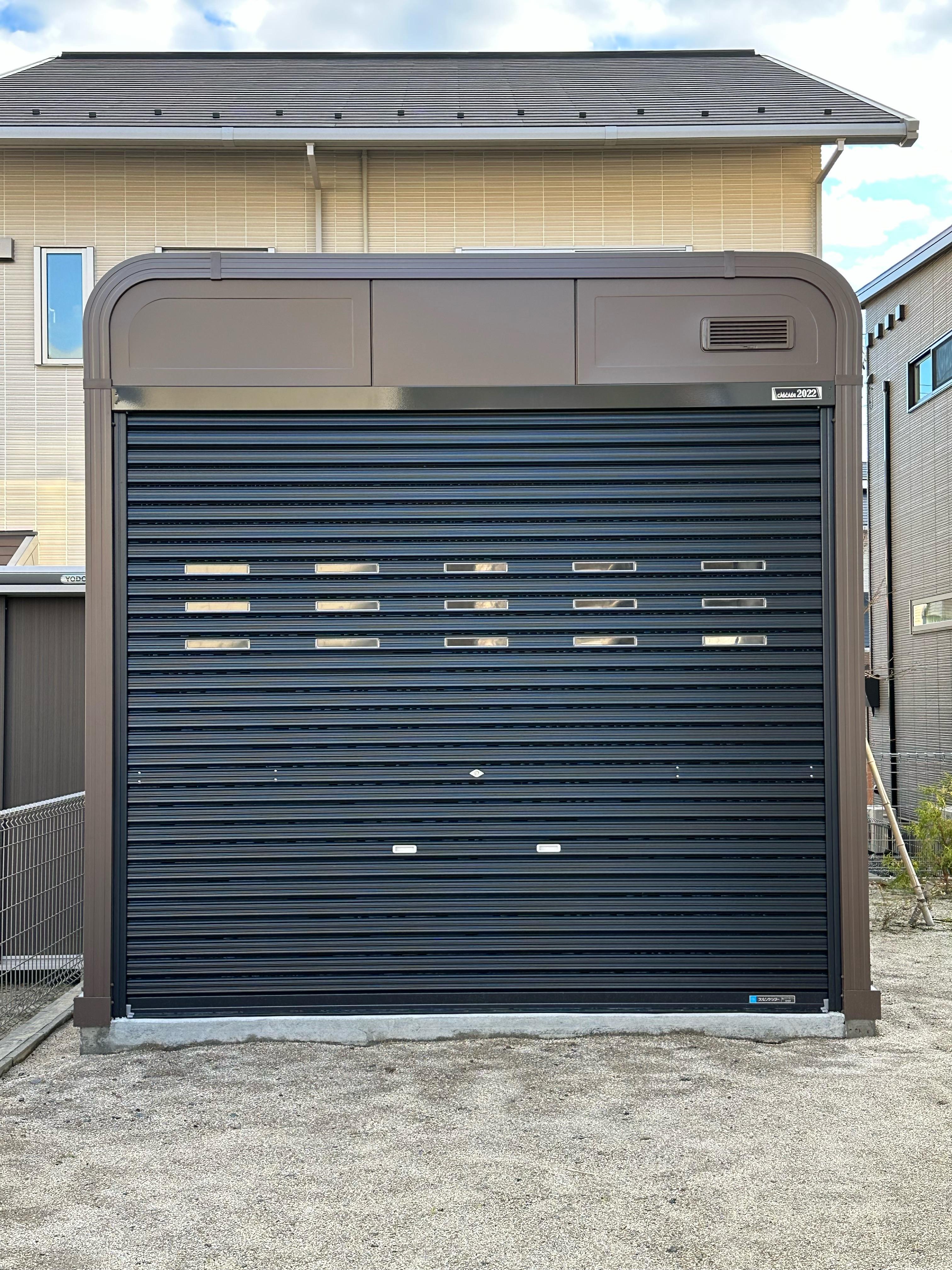 人気のカスケードガレージが完成しました✨ カスケードガレージは本体の色・シャッターの色が豊富にありますので、 自分好みのガレージをつくる事ができます。 今回のお客さまは…本体:ブラウン、シャッター:ブラック になっています。