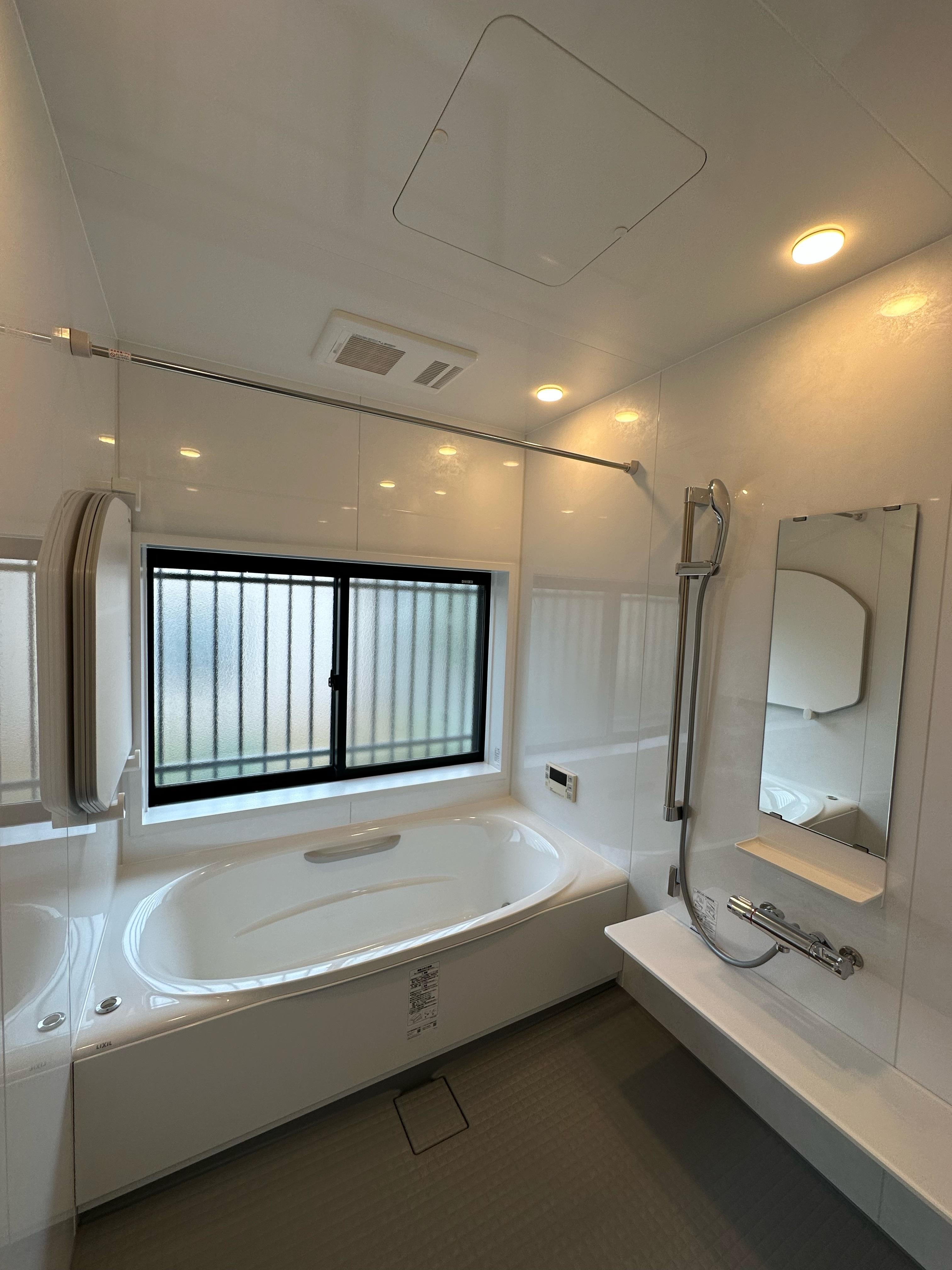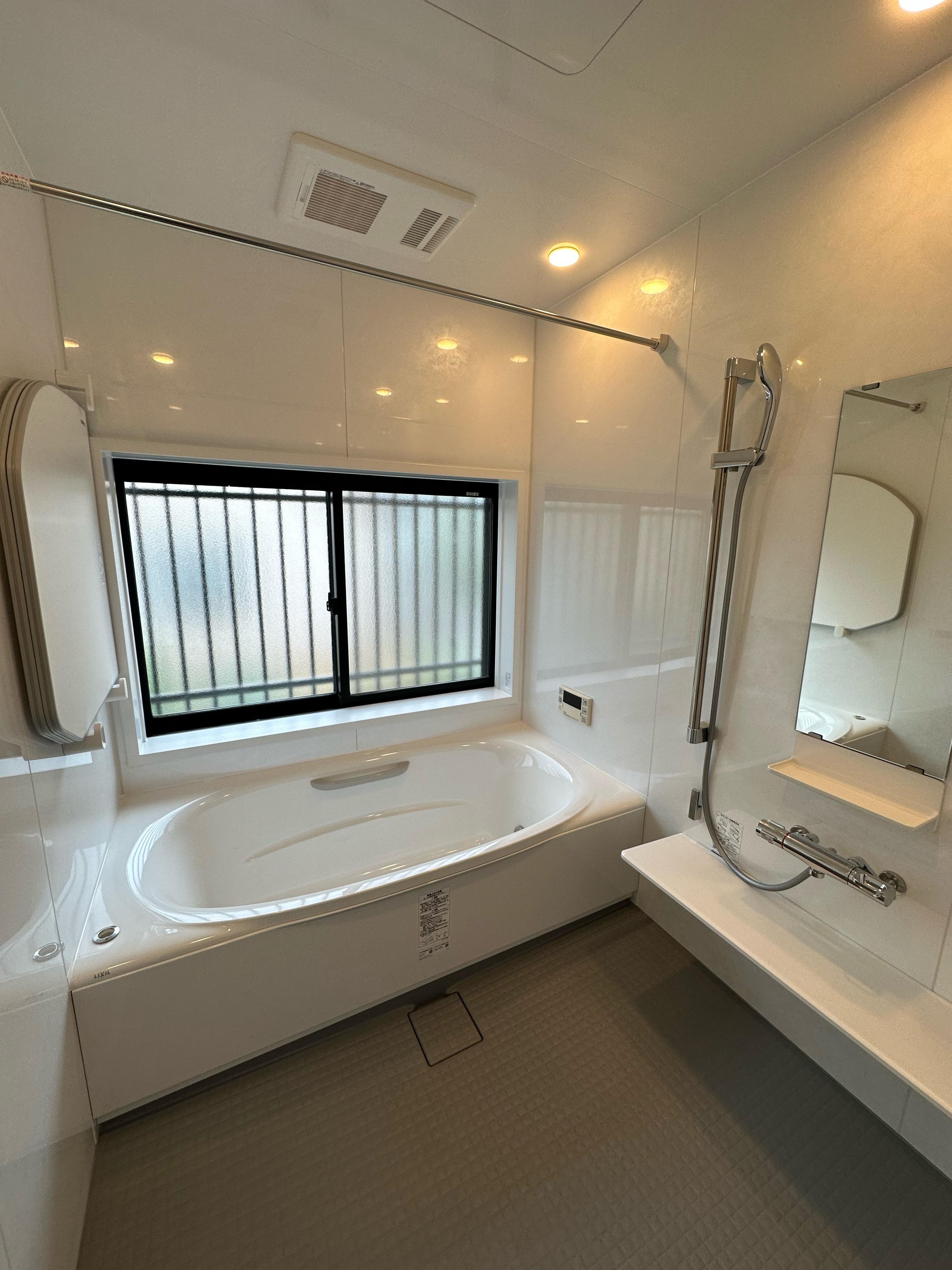 これまでお使いになっていたユニットバスですがきれいな状態で解体するのがもったいないくらいでした。 今回はLIXILシステムバスルーム~リデア~を設置いたしました。 こどもエコすまい支援事業とLIXIL壁パネル無料アップグレードキャンペーンが重なりお得にリフォームできました。