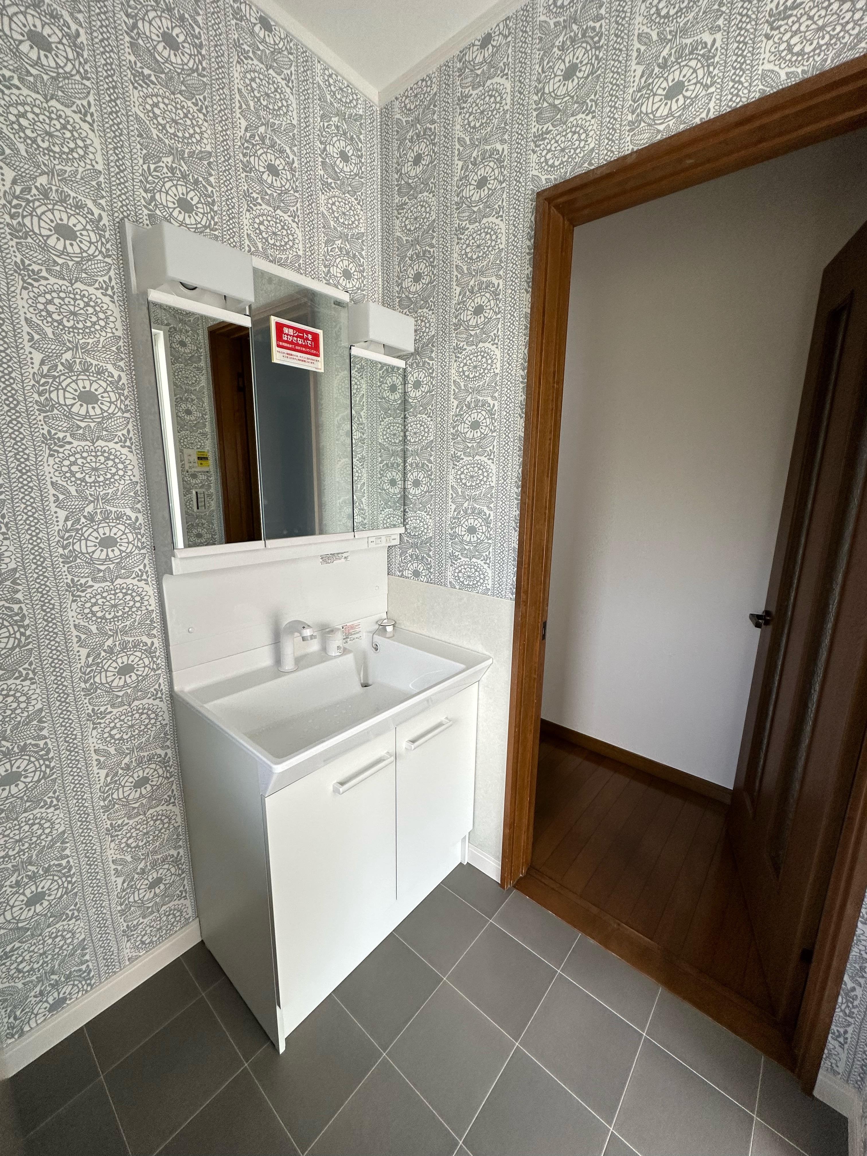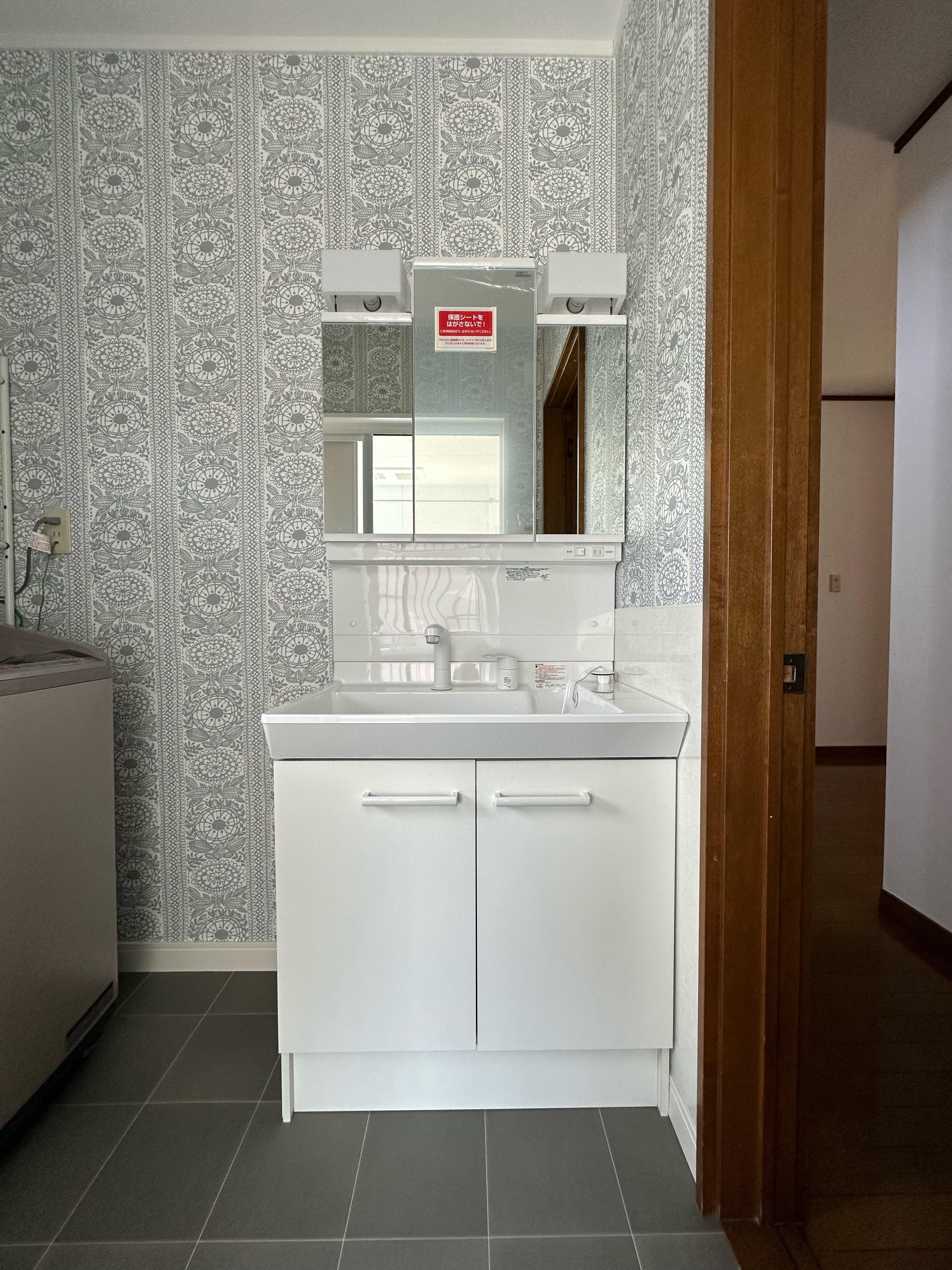 洗面化粧台と同時に脱衣場のクロス・床も張り替えました。