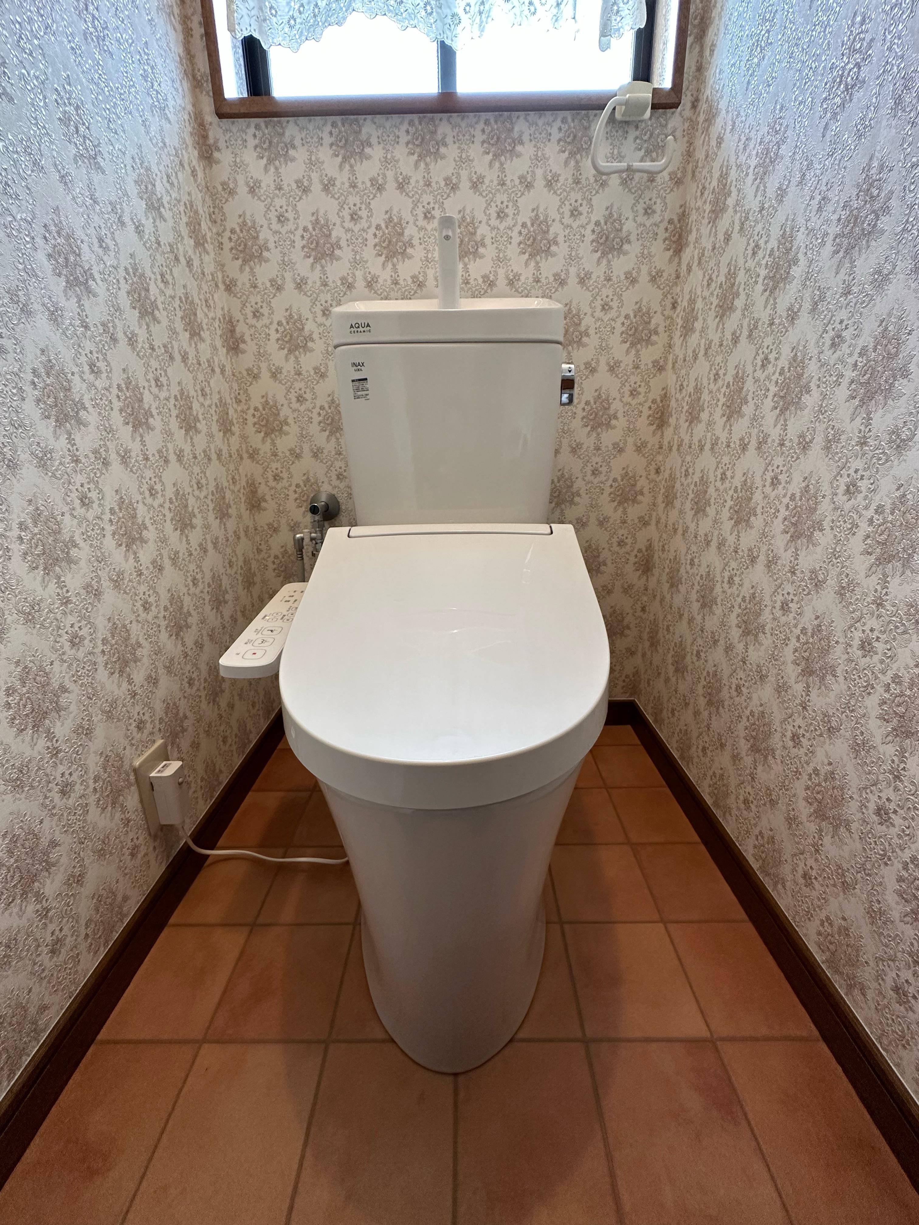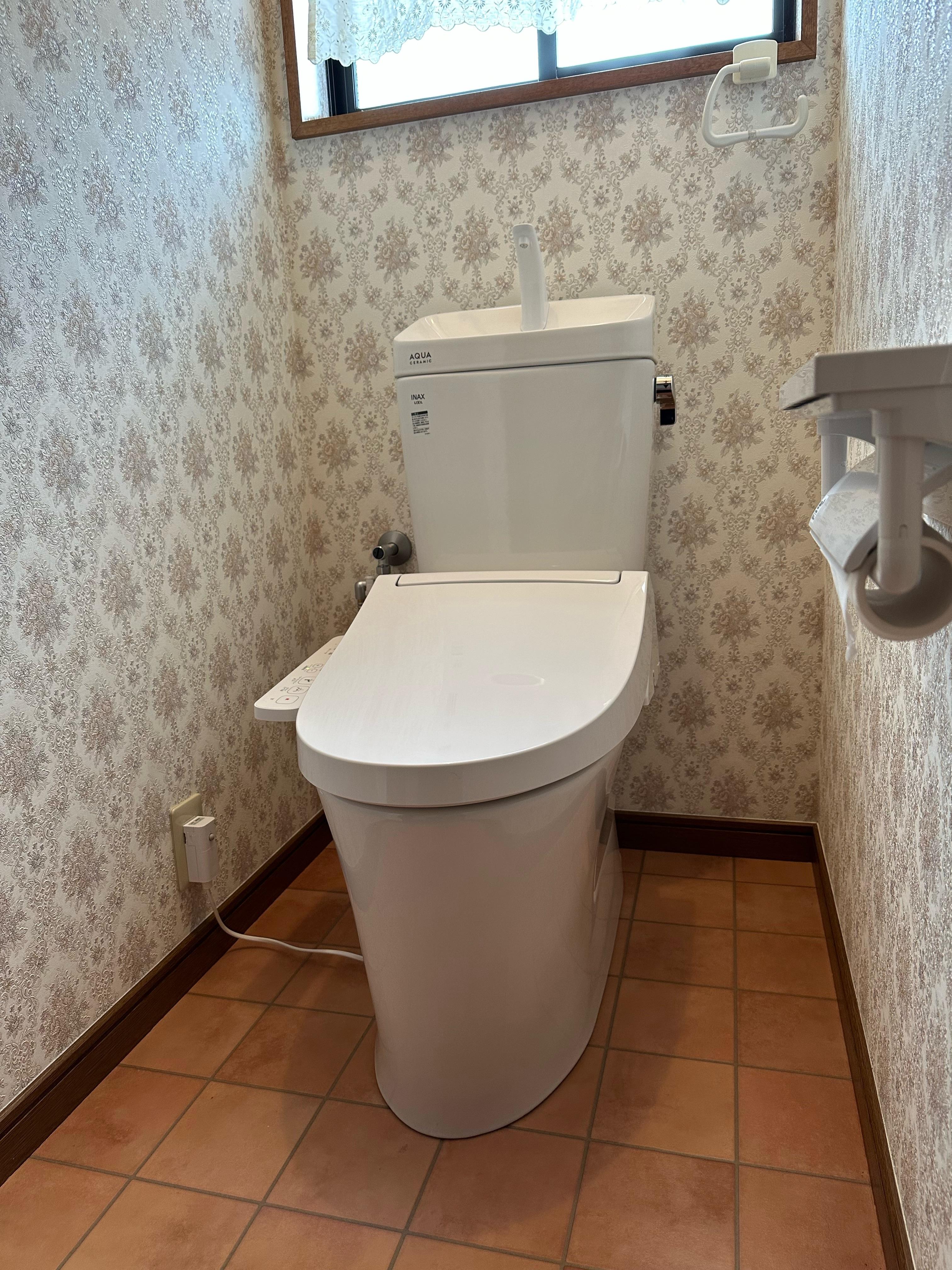 アメージュ便器への交換と同時にクロス・クッションフロアの張替えもいたしました。