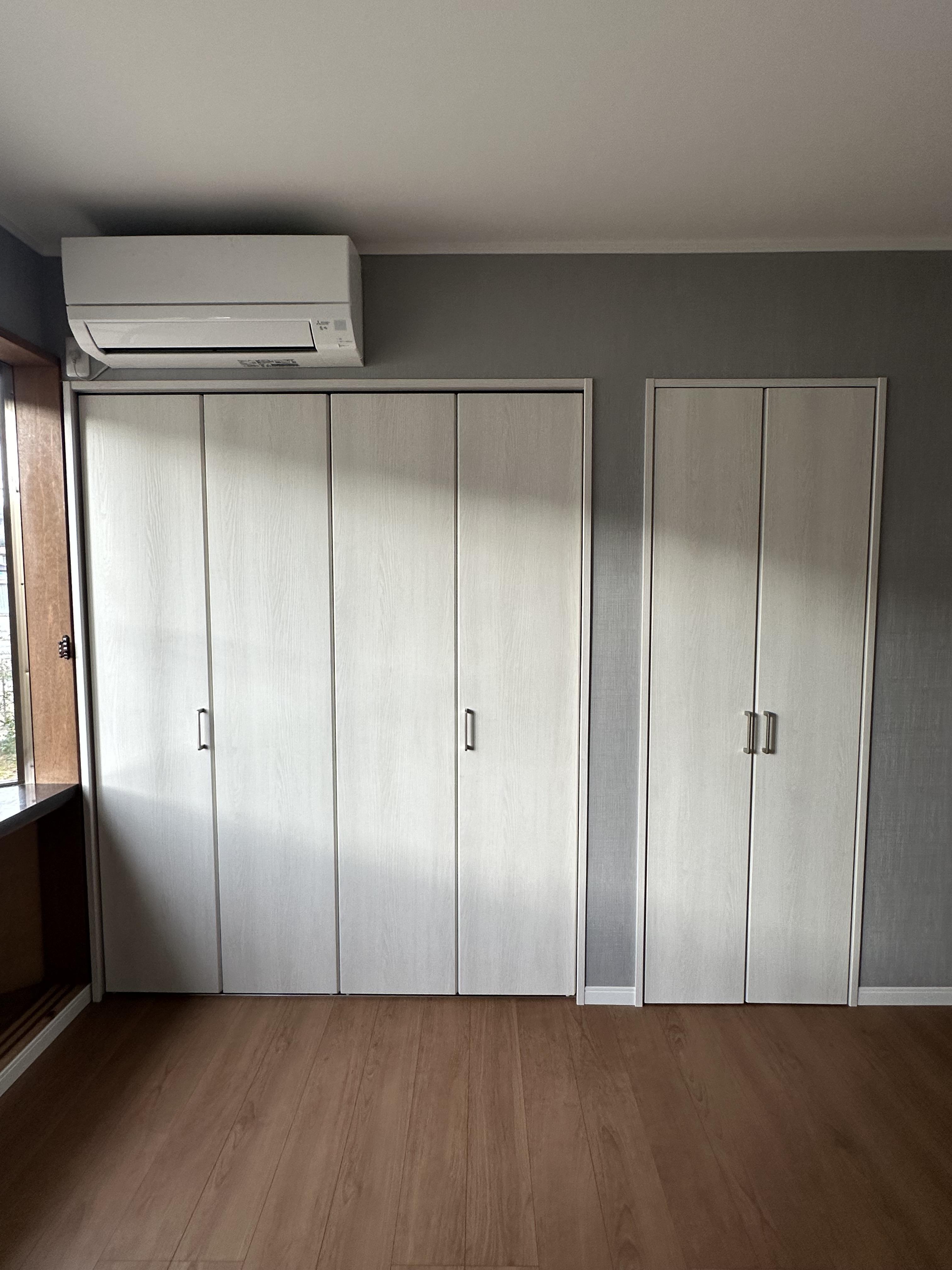 部屋をマルっとリフォーム・・・クロスと床を張り替え、豊富な収納力のクローゼットも設けました。 窓には LIXIL内窓インプラスを設置し、断熱のことも忘れず考えています。 国の補助金「先進的窓リノベ2024事業」に当てはまります。