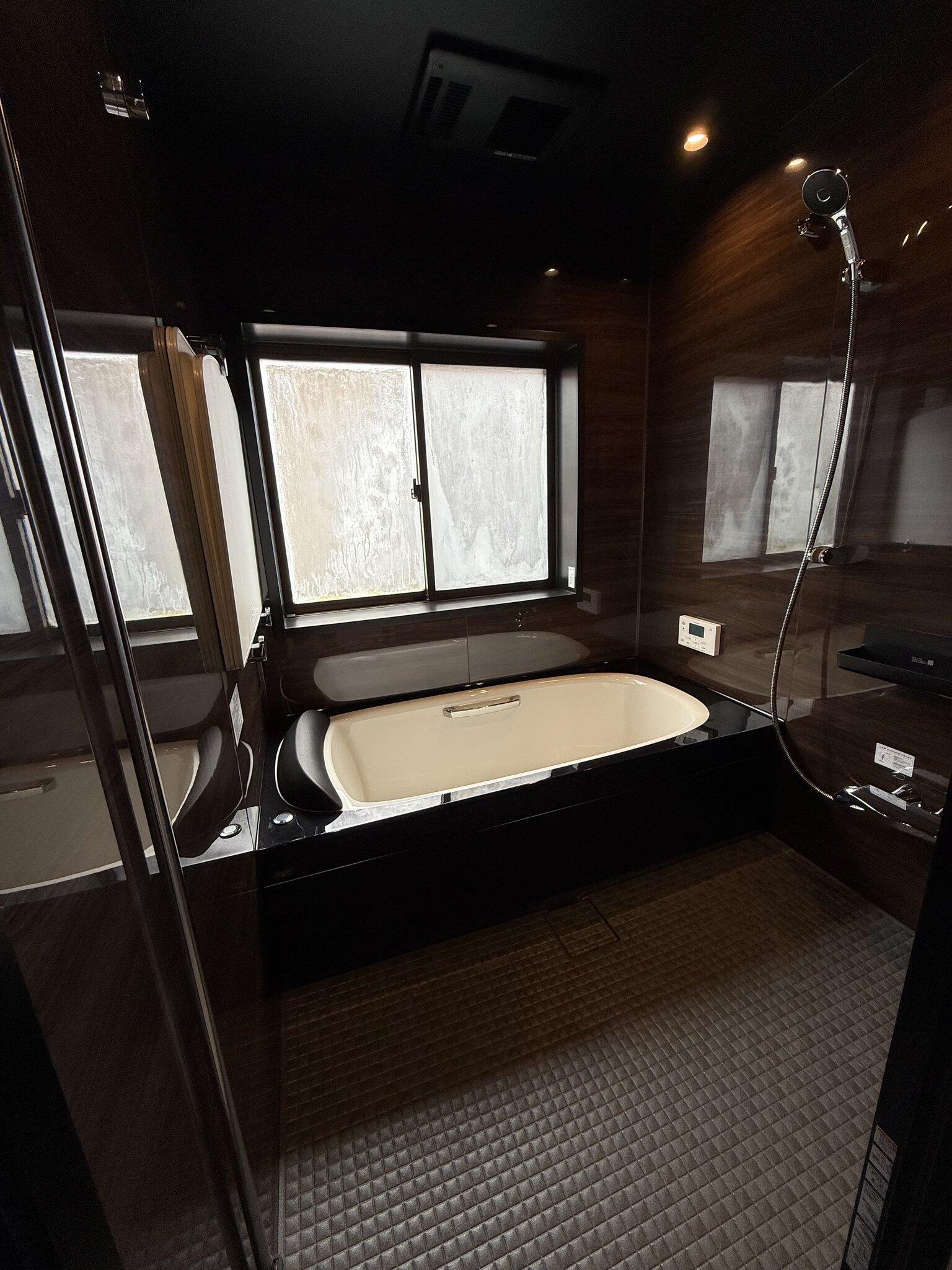 これまでは白を基調とした浴室でしたが、 今回のリフォームではダークな色で合わせました 浴室本体は「LIXILシステムバスルーム スパージュ」です いつでもホテルライクをお楽しみ頂けます!