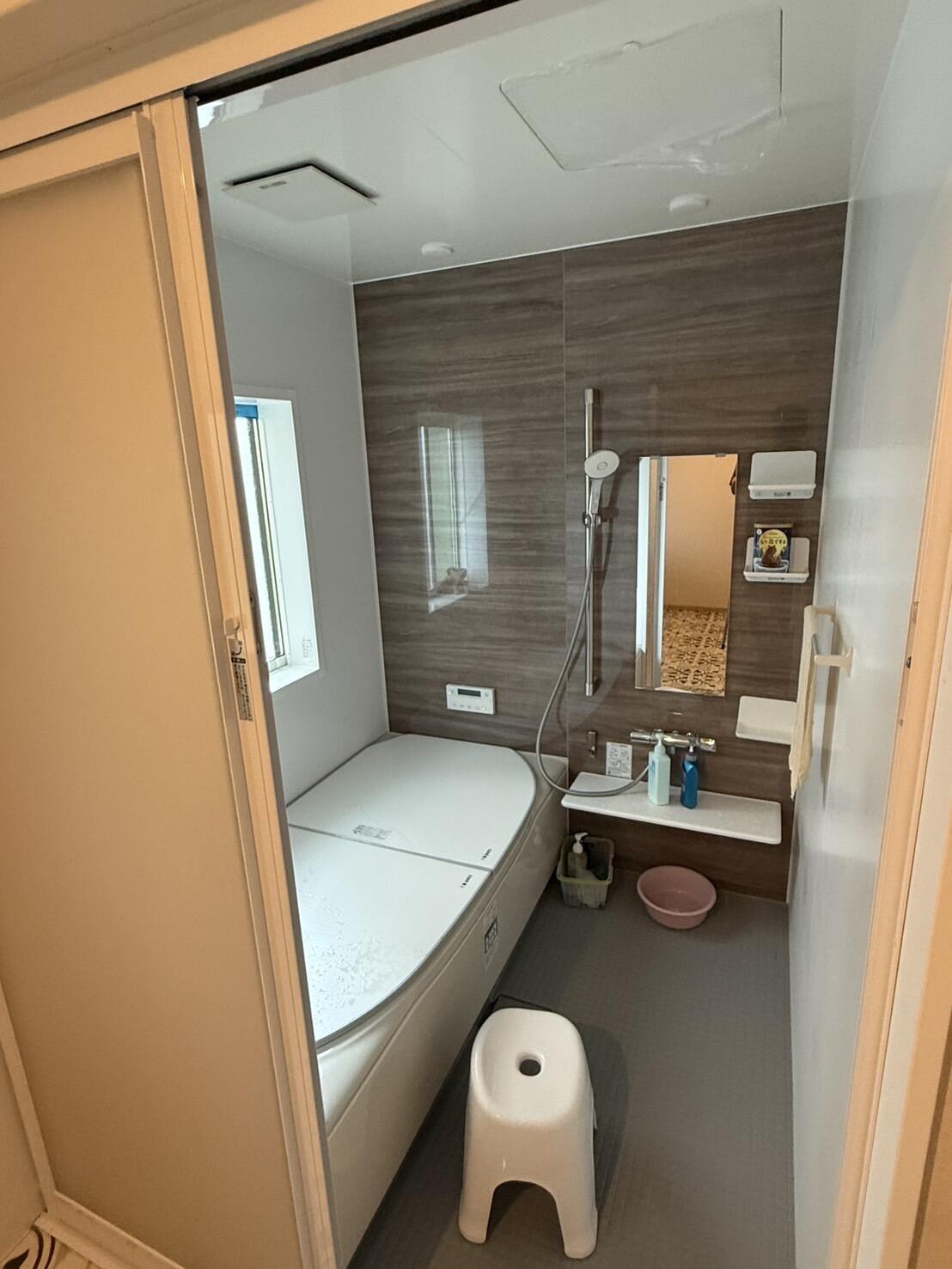 出入りは段差がなくフラットですので転倒防止にもなりますし、シャワーのスライドのスタンドが手摺としての強度をもっています。