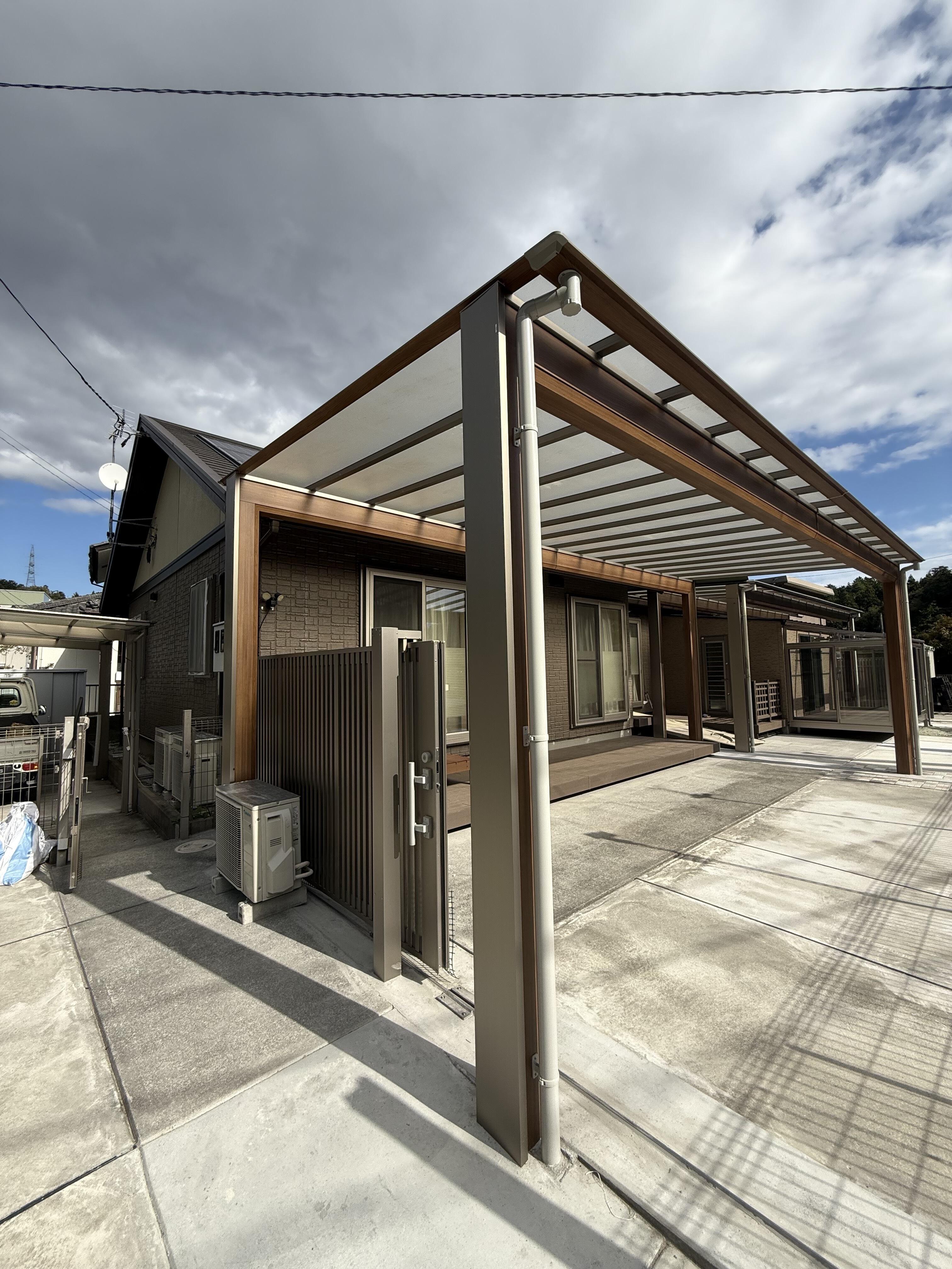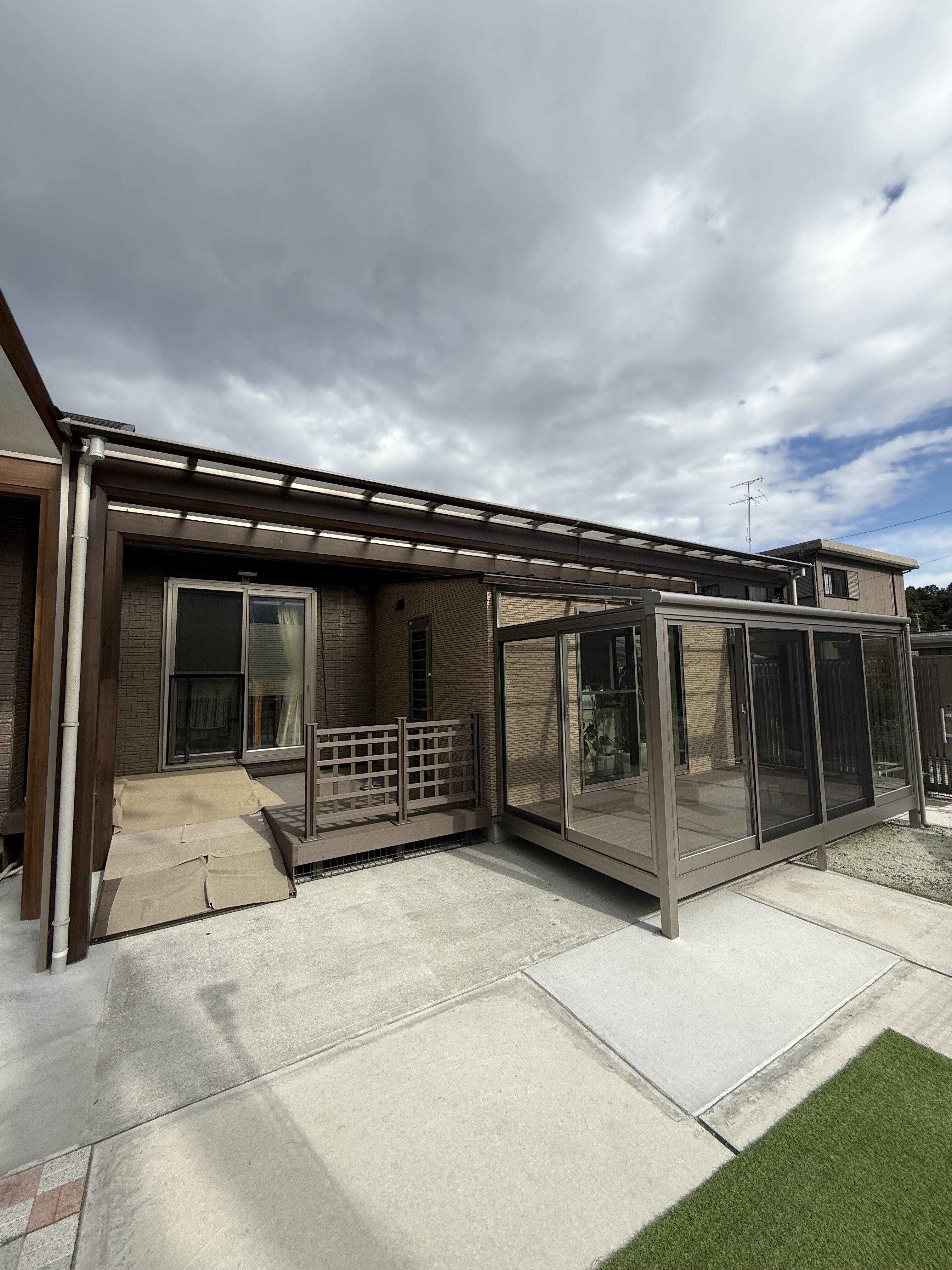 元サンルームのあった場所に1部屋増築をし、サンルームを設置。 大型のカーポートを設置し、ワンちゃんが外に出ても安心して遊べる空間をつくりました。 ワンちゃん用のスロープも付けたので窓からの出入りのしやすさなども考えて設計しています。