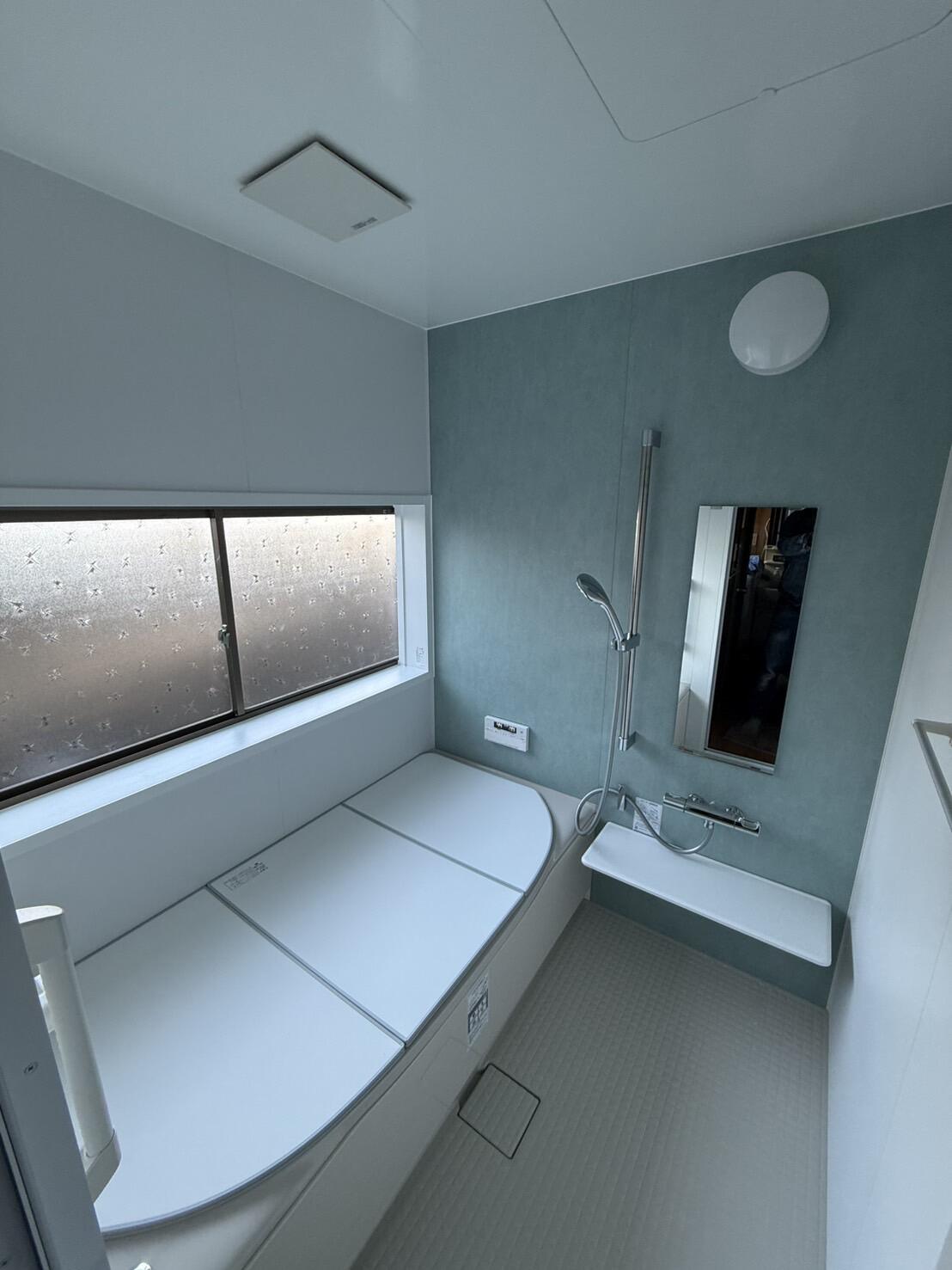 今回のこちらの商品は人気の LIXILシステムバスルーム「リデア」です。 アクセントボードが青系なので青×白で、爽やかな室内になっています。 シャワーはスライドバーなので高さは自由自在で、手すりにもなるのでおすすめのアイテムです。