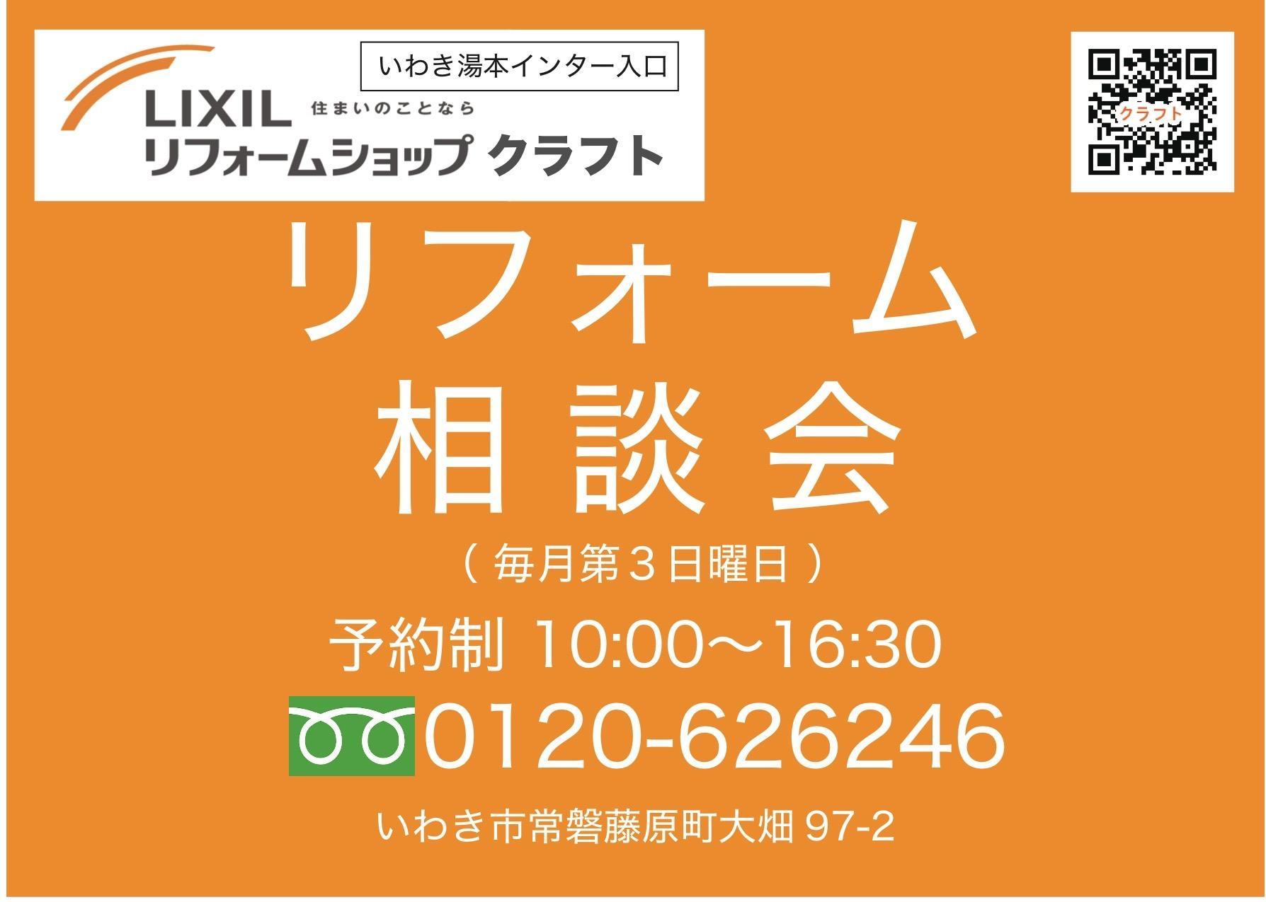 今年度よりクラフトでは、毎月第3日曜日を【 リフォーム相談会 】の日として営業いたします。