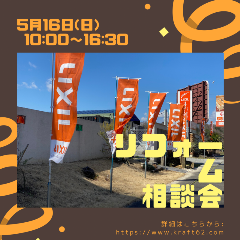 一覧へ戻るお知らせが遅くなりましたが、5月のリフォーム相談会を16日開催いたします。