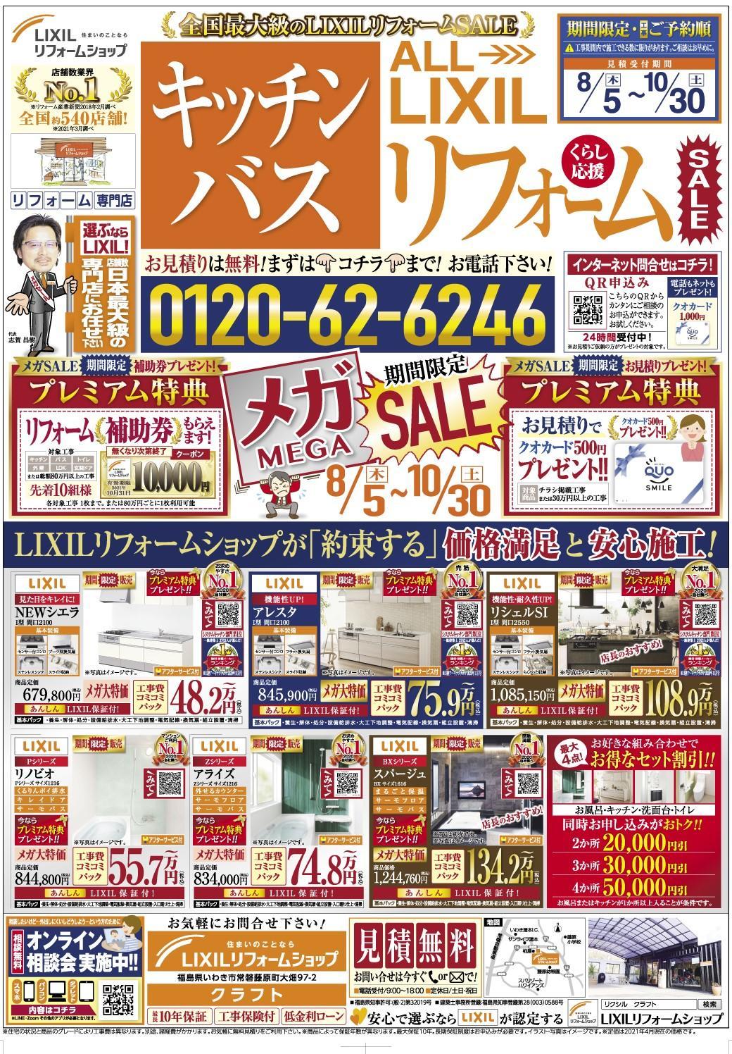 8月5日よりLIXILリフォームショップではセールを開催中です!