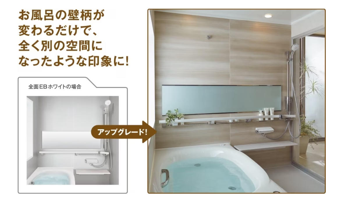 お風呂の壁柄が変わるだけで今までとは違った空間になります。