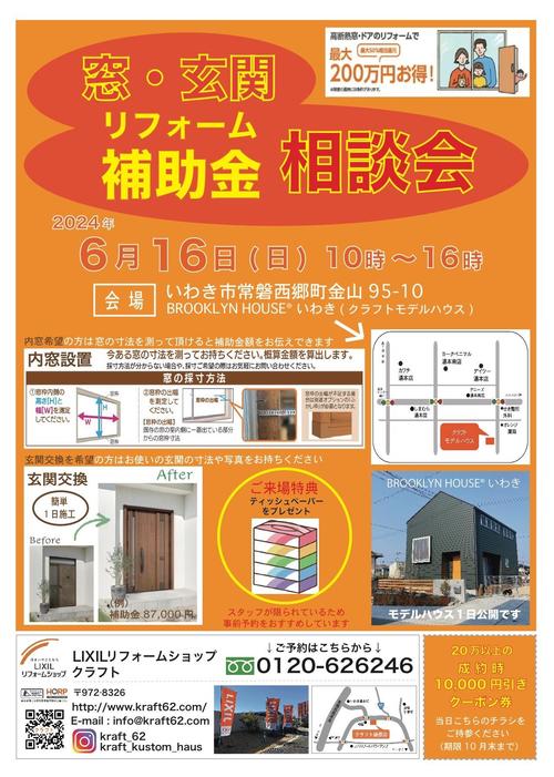 各補助金の中でも一番還元率の良い「窓・玄関ドア」の補助金相談会を開催します。