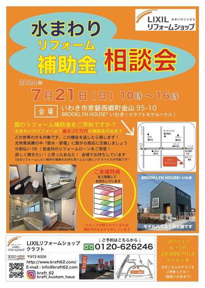 7/21(日)10:00~16:00 は「水廻り補助金リフォーム相談会」です!