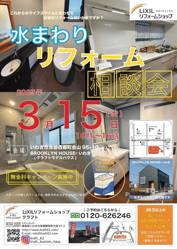 今月の相談会は、3月15日(土)・水まわりリフォーム相談会です