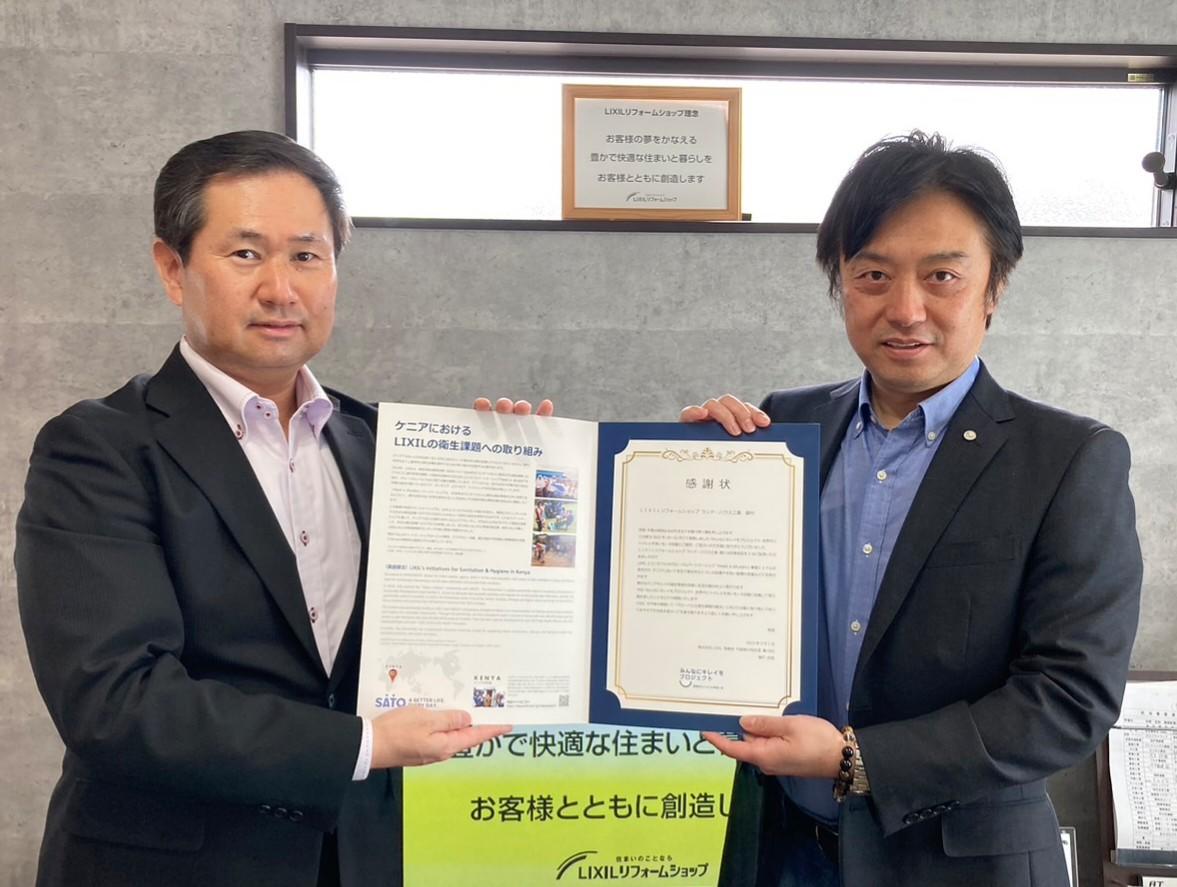 (株)LIXILよりユニセフとのグローバルパートナーシップ「世界中にトイレと手洗いを」の活動に対し感謝状を頂きました。