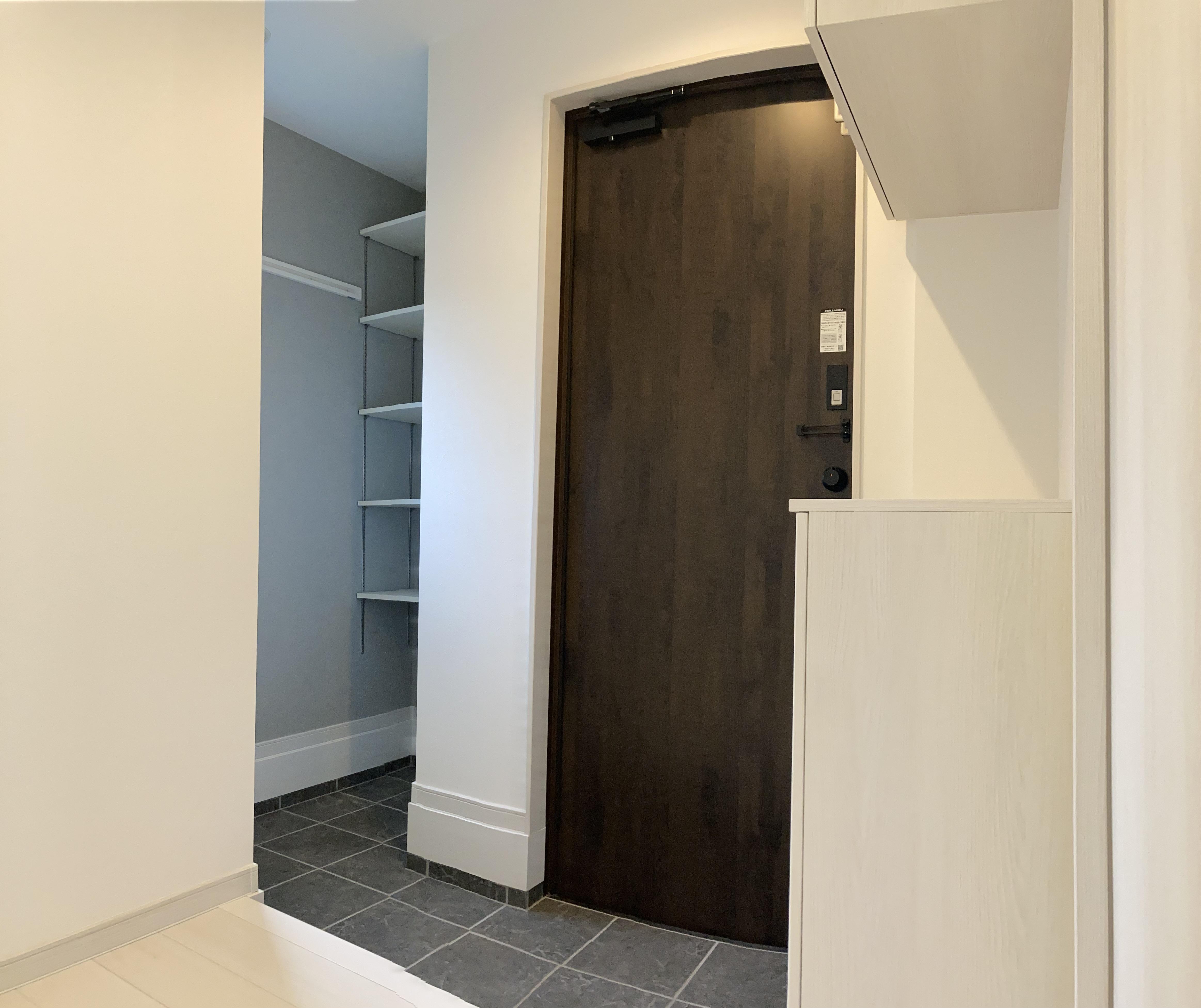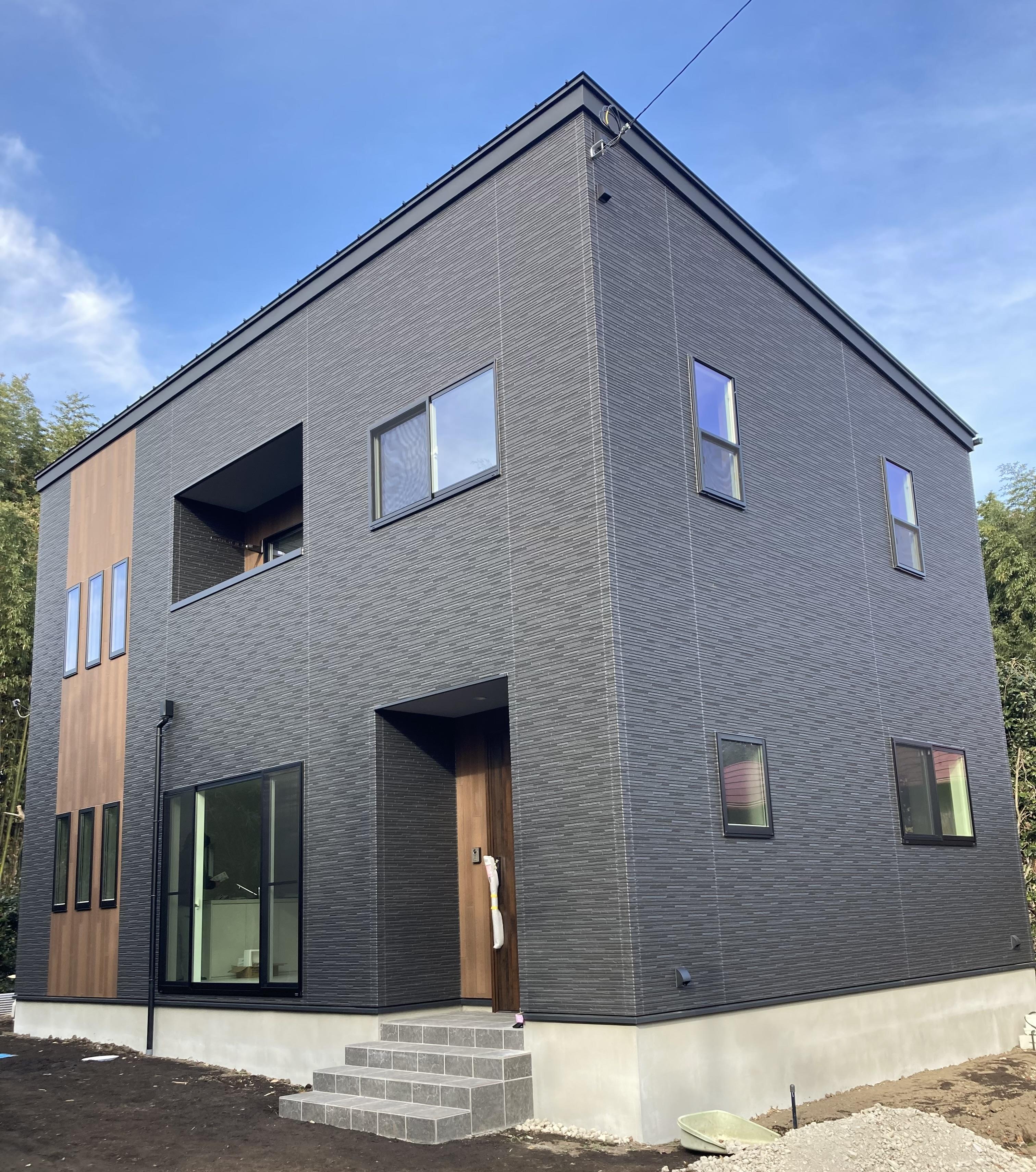 外観はグレー×茶色の飽きの来ないデザイン✨ リビングは、茶色の建具と白いフローリングなので、とても開放感があります。 トイレやパントリーには、明るい壁紙を使用してます^^
