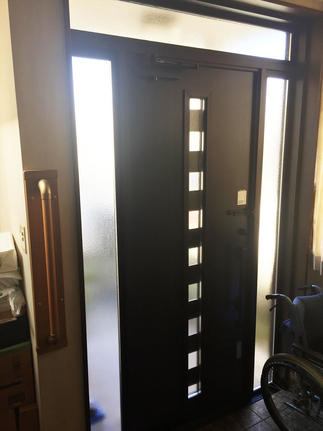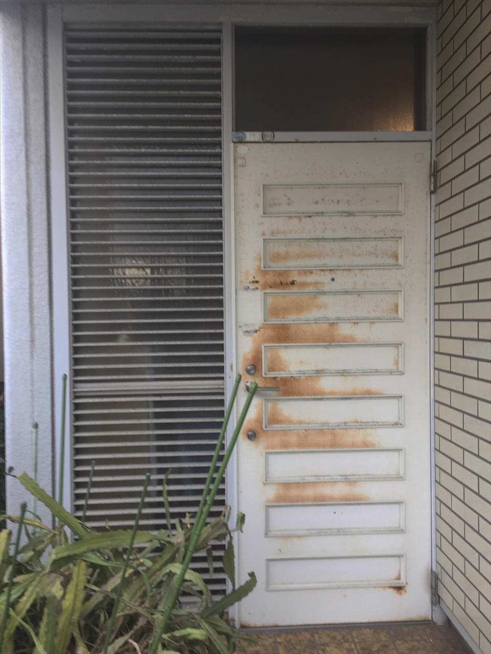 離れて一人で暮らすお母様の家の玄関ドアが錆と塗装の剥がれで汚く、年内に急いで交換してあげたいとのご依頼を頂きました。