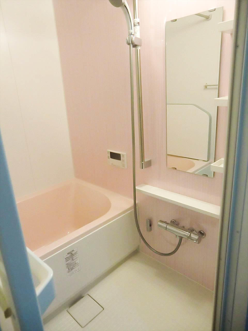 バランス釜からユニットバスに変更し浴槽を広く確保できました。アクセントパネルを貼りおしゃれになりました。
