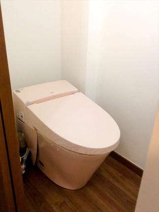 縦に通っている排水管を隠し、旧型トイレからタンクレスのLIXILサティスに取り換えました。