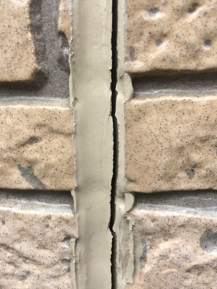 外壁サイディングの目地が割れていて雨の侵入が心配な状況でした。旦那様も気にされていて、何とかして欲しいと相談されました。