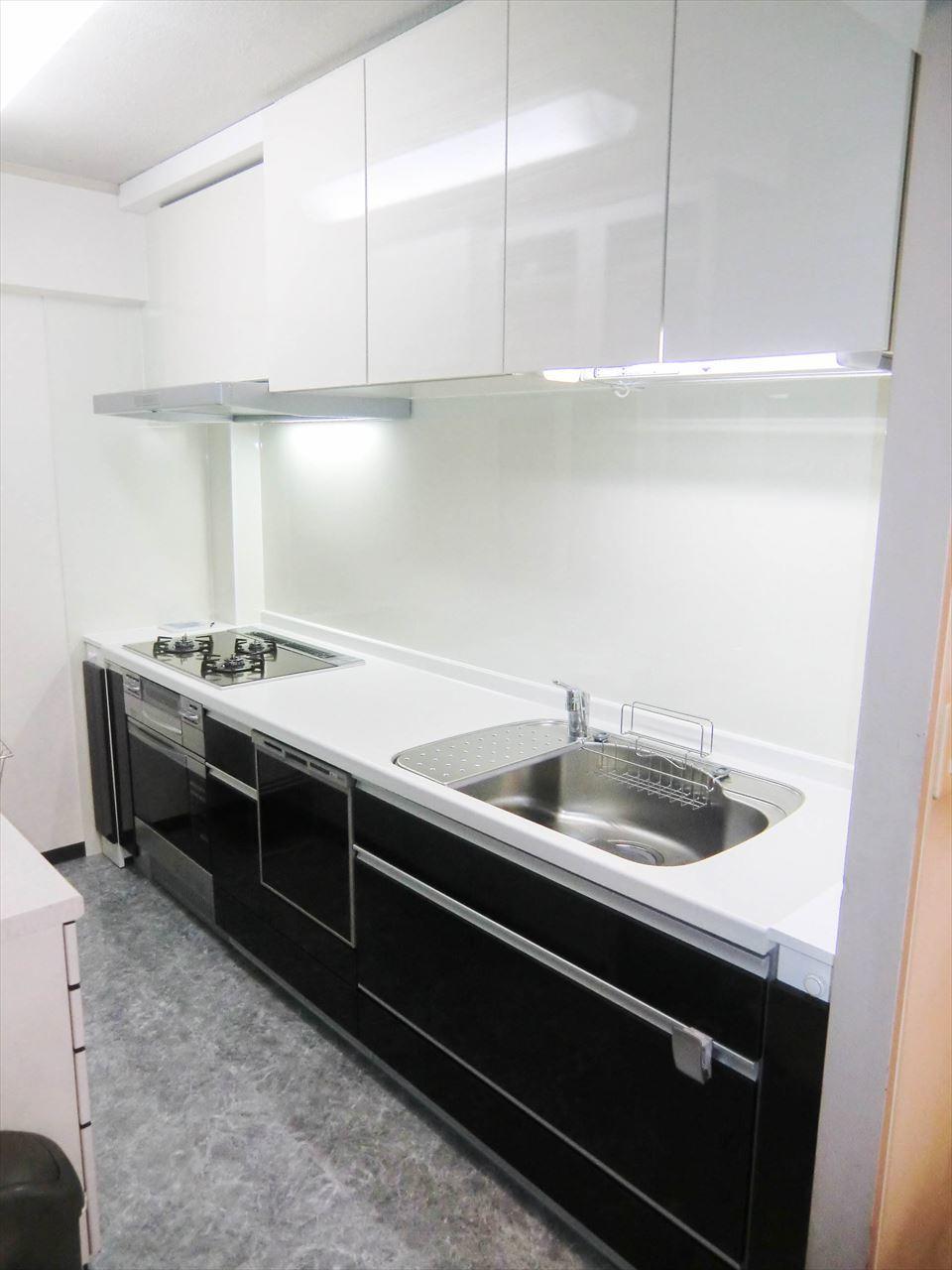 デザインはLIXILのショールムへお客様と同行して決めていきました。吊戸棚と下台の扉を色違いにし、圧迫感を無くしました。壁から壁までのピッタリサイズのキッチンが希望との事でしたが、奥に柱があり、施工が難しかったので、大工さんがスライドストッカーを造作しました。キッチンはLIXILのアレスタ(2600mm/ガスオーブン付)を採用しました。