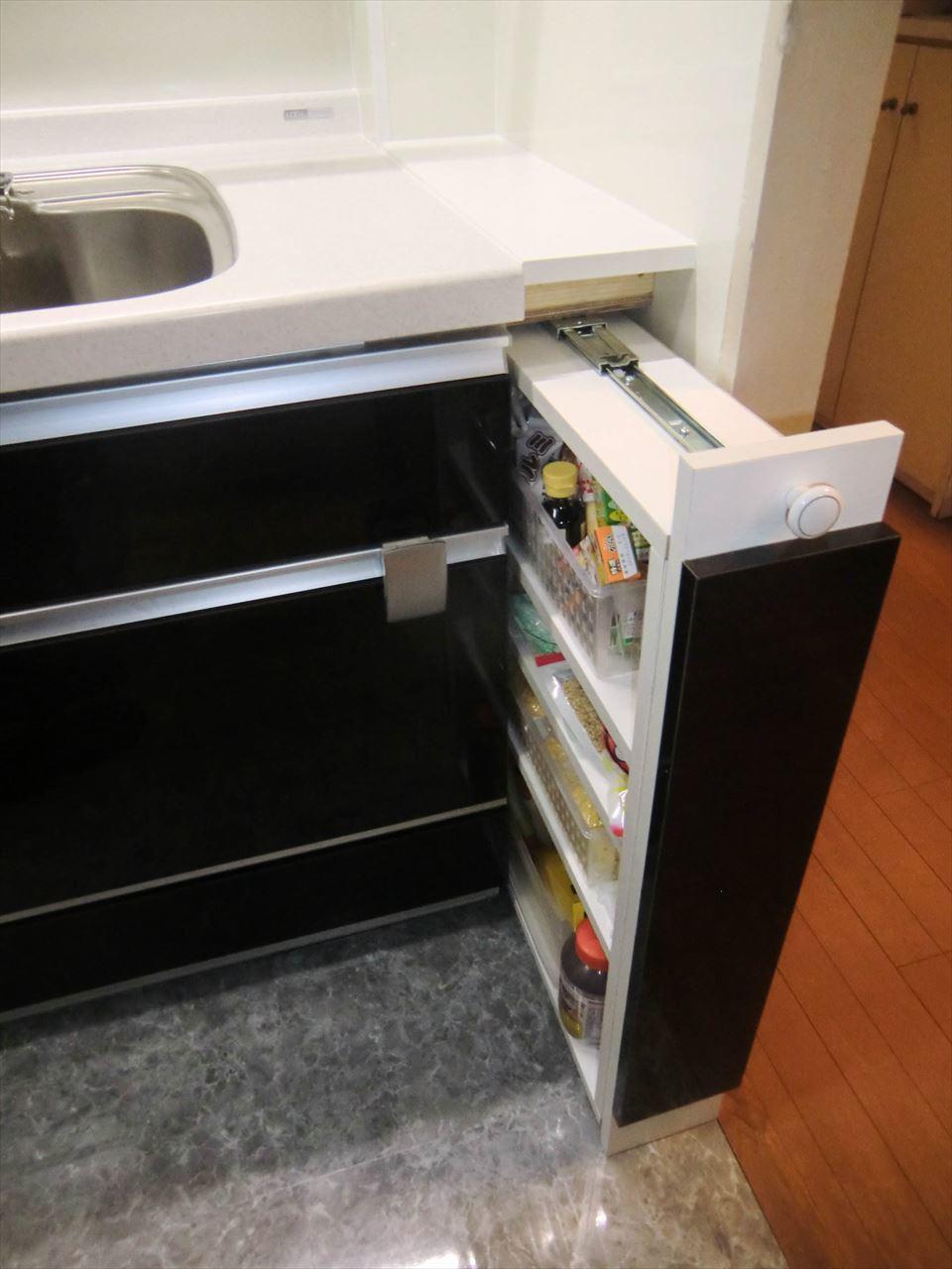 スライドストッカーはキッチン両端の収納に着けました。無駄なく使えるスペースで、スライド式のためとても使いやすくなりました。お客様にも喜んで頂けて良かったです。