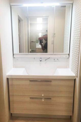 洗面台はそこまで問題は無かったのですが、収納があまり無いタイプでしたので収納力が多いものをお選びになられました。新しい洗面台はLIXILのLCを採用。鏡面裏に収納ができ、下台の収納を引き出し収納にされたので高さを有効利用でき収納力がUP!また、水栓位置が上部からの引き出し式になっておりまので水がたまる部分が少なくなり掃除が大変楽になりました。