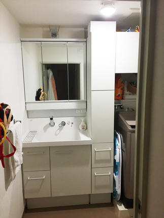 給湯器が交換時期であり、水廻りのリフォームをそろそろと考えていました。脱衣所が狭く収納が少ないので、収納を増やしてスッキリとした空間にしたいと相談を頂きました。