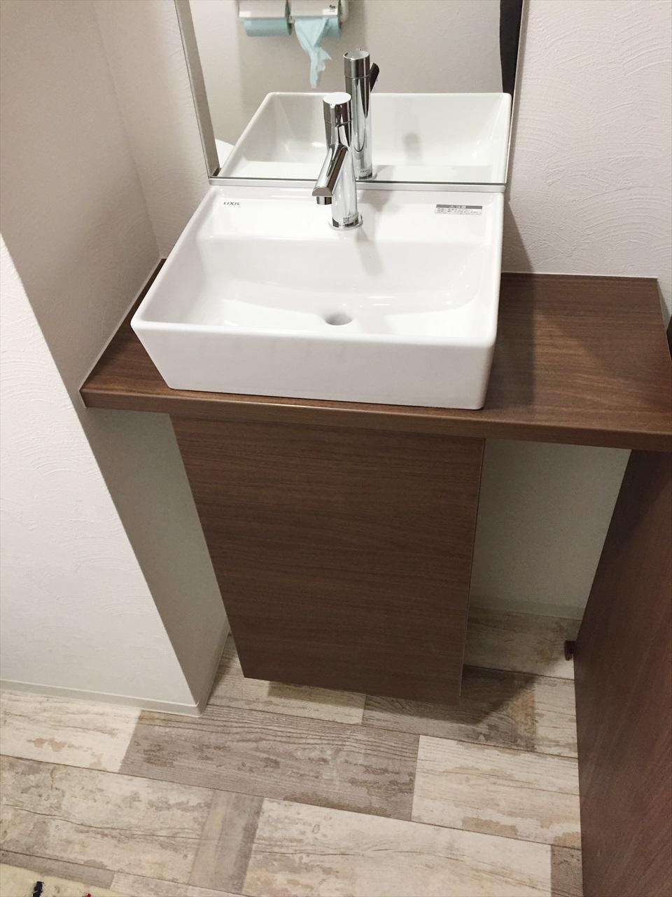 トイレに洗面台代わりになる手洗いが欲しいとの事で、キャパシアの奥行280mmカウンタータイプで小型の電気温水器付にしました。