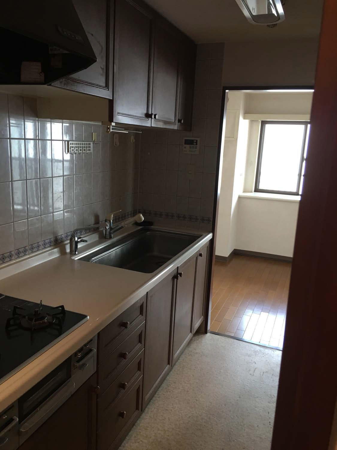 マンションなので玄関が狭いというのがお悩みでしたので思い切って洋室を狭め、玄関の土間を横に広げ玄関の収納スペースを広げました。可動棚を付け靴は何足も入れられます。外で使用するベービーカーなどもそのまま入ります。エコカラット ミラーも貼りより広く見えますね。全体的にグレー色で合わせた落ち着いた雰囲気にまとめてあります。