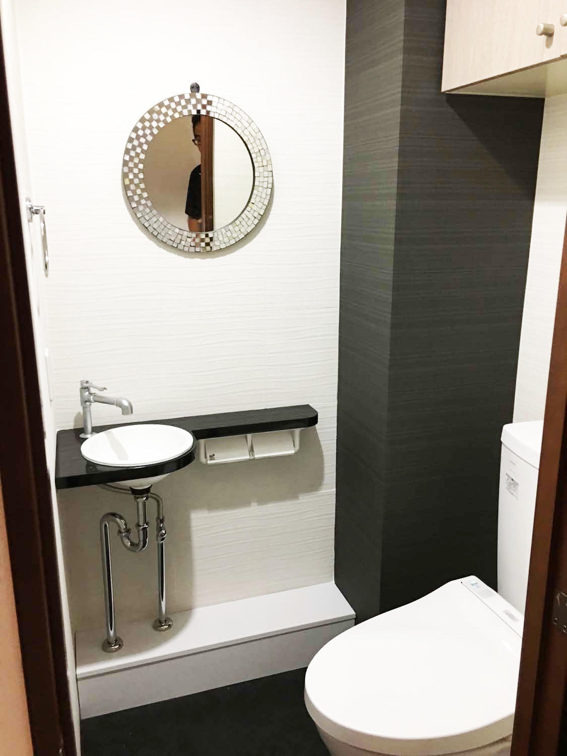 トイレは既存ですが手洗い器のデザインが古買ったのでお洒落なものにしました。
