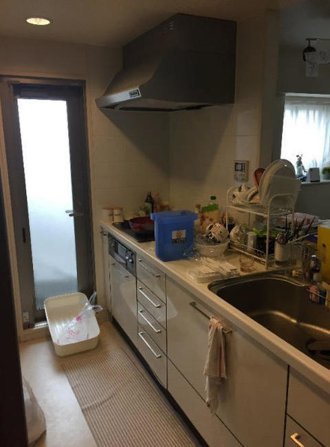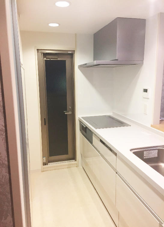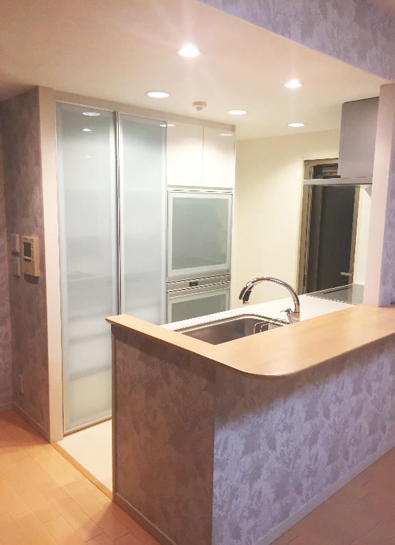 キッチンは旧キッチンと同サイズの2400アレスタです。 IHクッキングヒーター、汚れんフードでお手入れラクラク♪ キッチンの背面収納はアクリルトール仕様のカップボード、豪華な家電タワーを組み合わせました。 家電タワーには電子レンジもスッポリ入り炊飯器などすべてが隠れてスッキリします!!