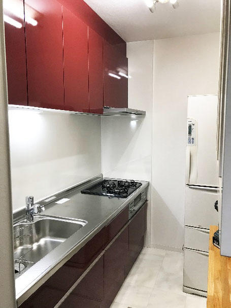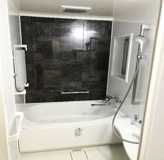 PSがあるため、拡張配置変換が出来なかったため、オーソドックスに交換しました。 色柄は奥様のご希望でカラフルなものにしています。 給湯給水管の交換があるため、一部床を解体して、配管経路の変更を行いました。