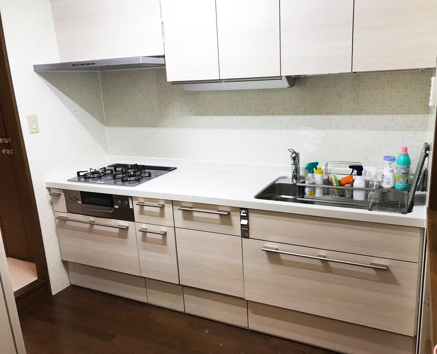 奥様が気に入られての選択となりました。 使い勝手の良さと、デザイン性が目に留まったようです。 同じ証明でもこんなに明るさに差が出ます。 食洗器も付き、快適にご利用いただけます。