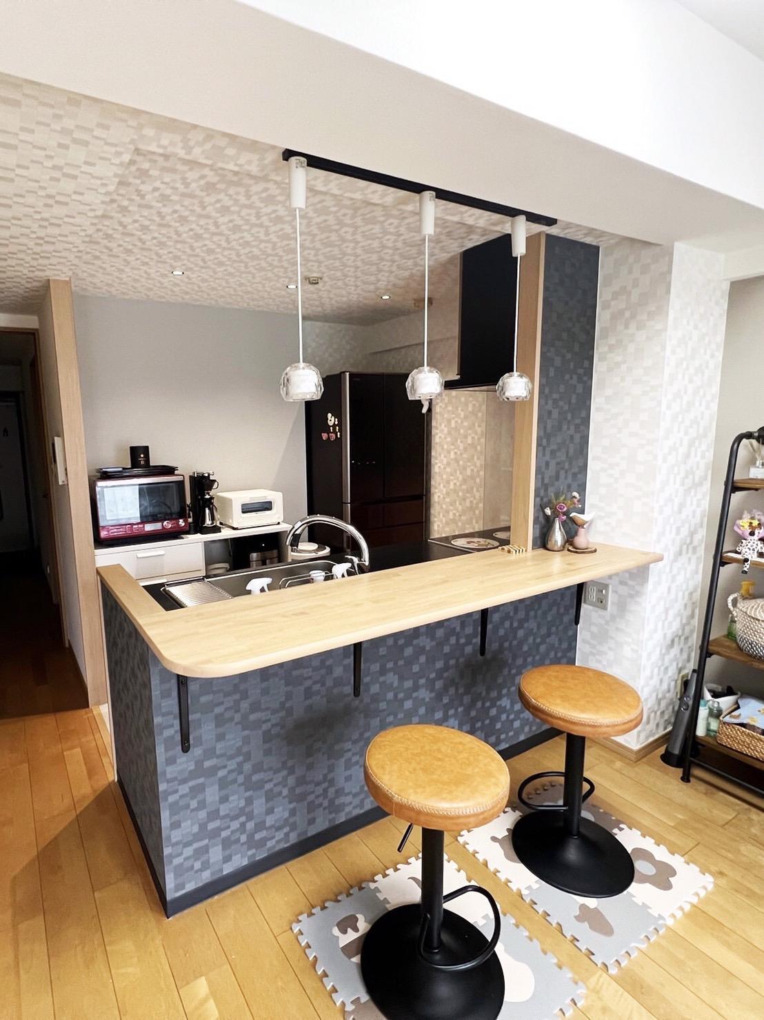 色にこだわるお客様でしたが、都度確認しながら変更を加えご希望通りのキッチンが出来上がりました。 施工業者さんの頑張りにも感謝です。