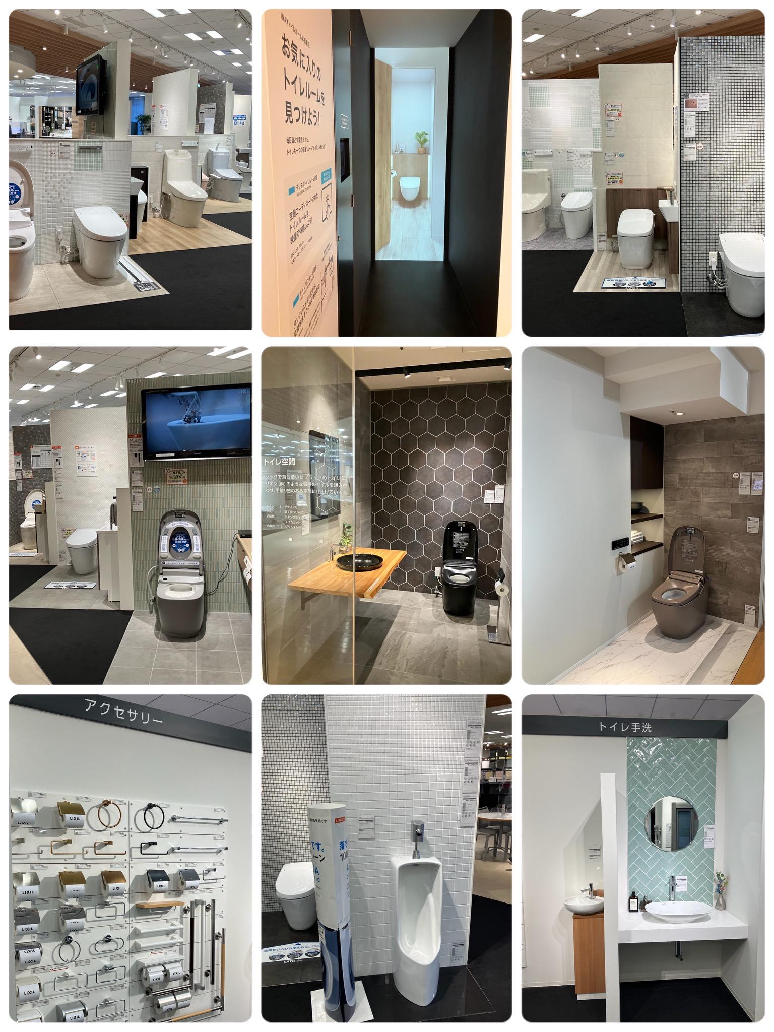 トイレは便器のカラーもたくさんあり、トイレ手洗いもいろいろ展示してありました☆