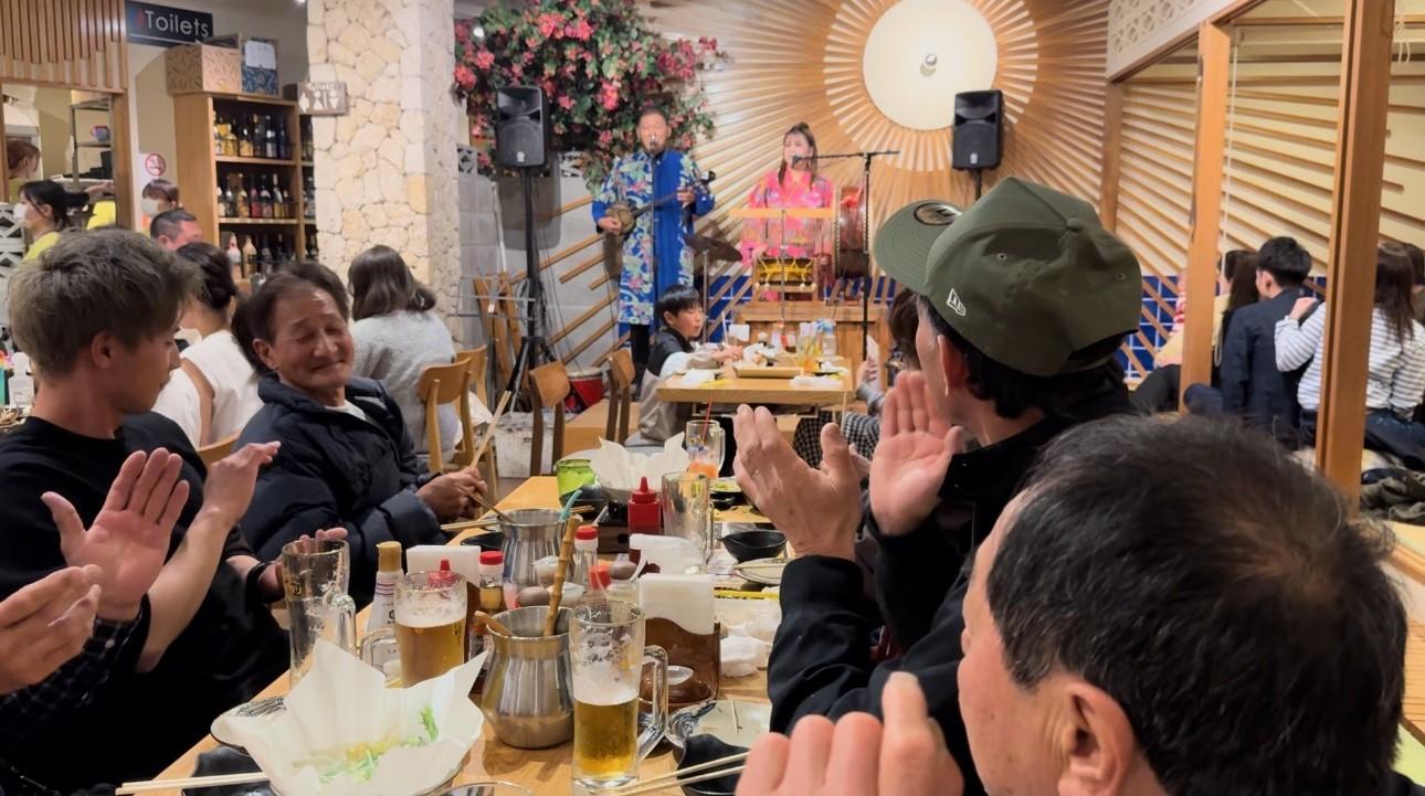 沖縄の食文化と伝統芸能に触れ、三味線民謡ライブで大いに盛り上がりました!