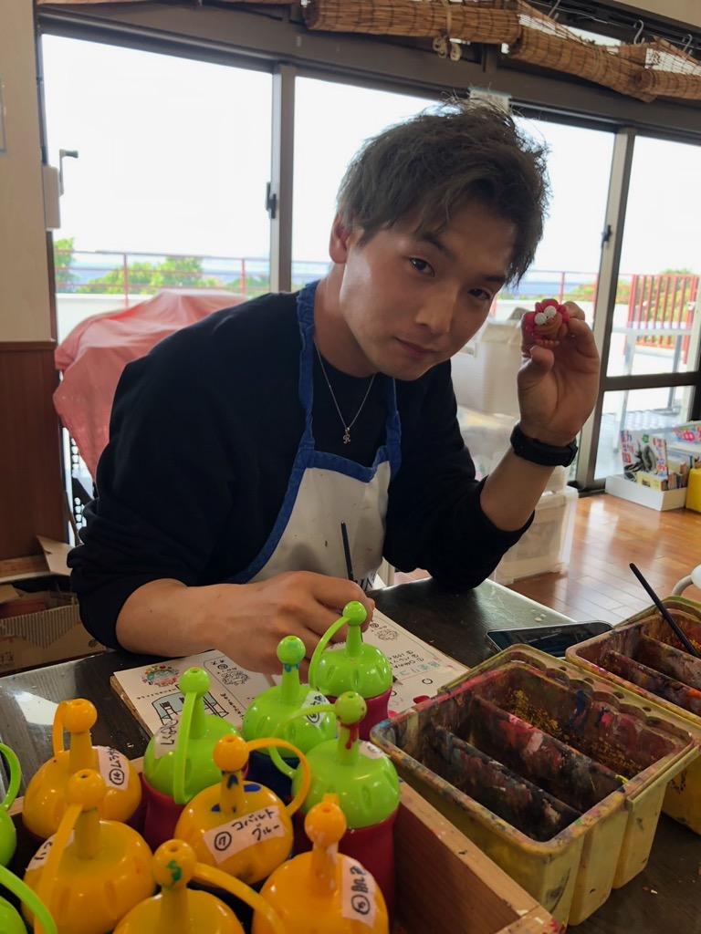 好きな形のシーサーを選び、それぞれ思い思いの色で塗ってみました!!