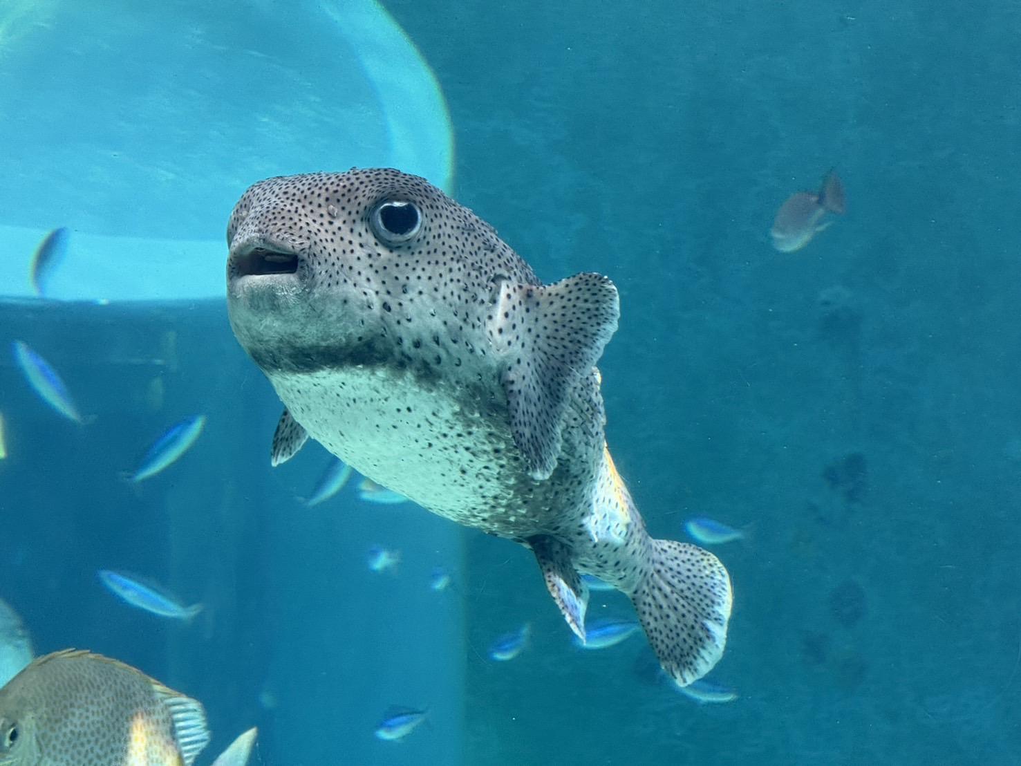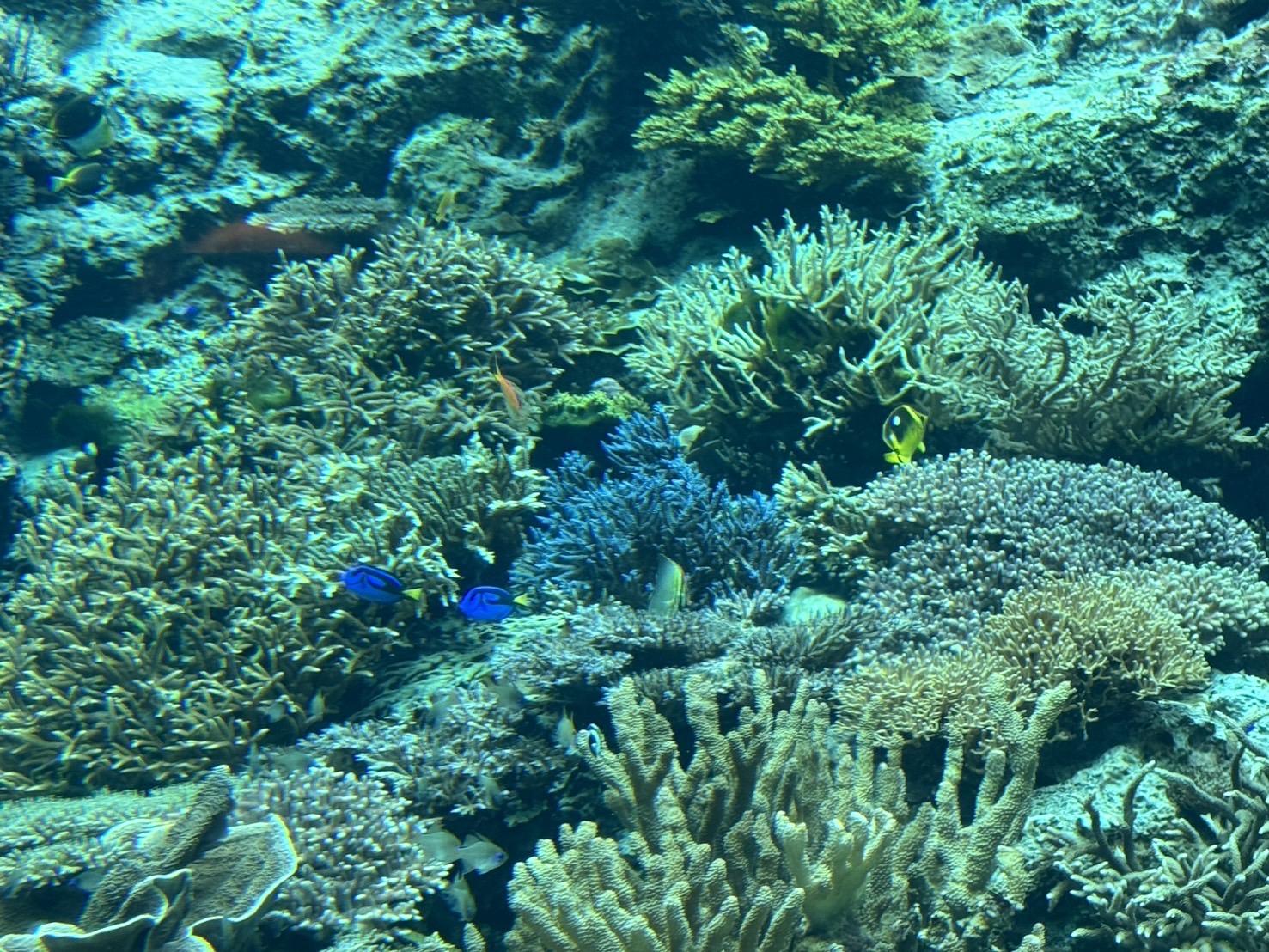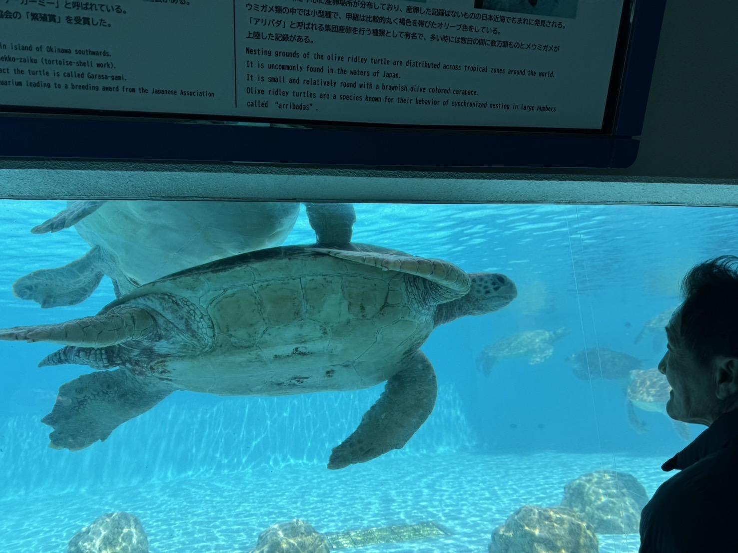 大迫力の巨大水槽で魚類最大のジンベイザメや、ウミガメ、ナンヨウマンタなどを見ました!