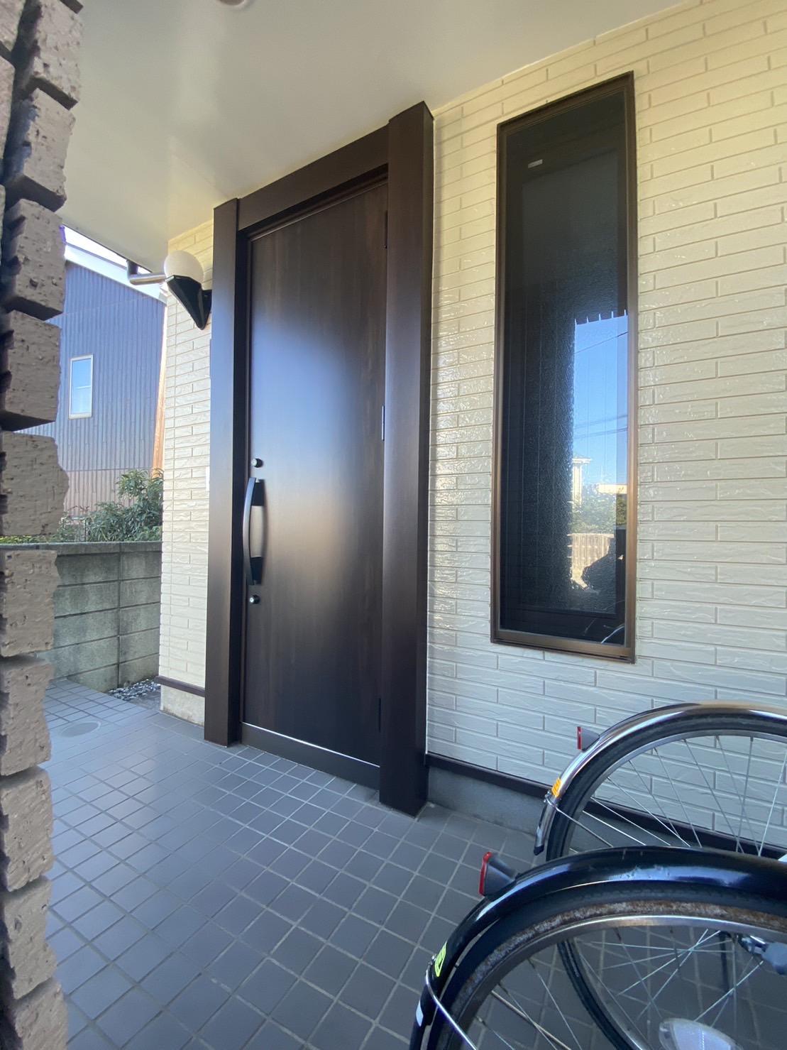 ◯今回の玄関ドアのリフォームは、LIXILのリシェントという既存の玄関ドア枠の上に新しいドアを枠ごと取り付けるカバー工法という方法で施工しています!! ◯リフォームはたったの1日で完了します! ◯大がかりな工事をすることなく、明るく風通しのいい玄関スペースに変えることができます!!