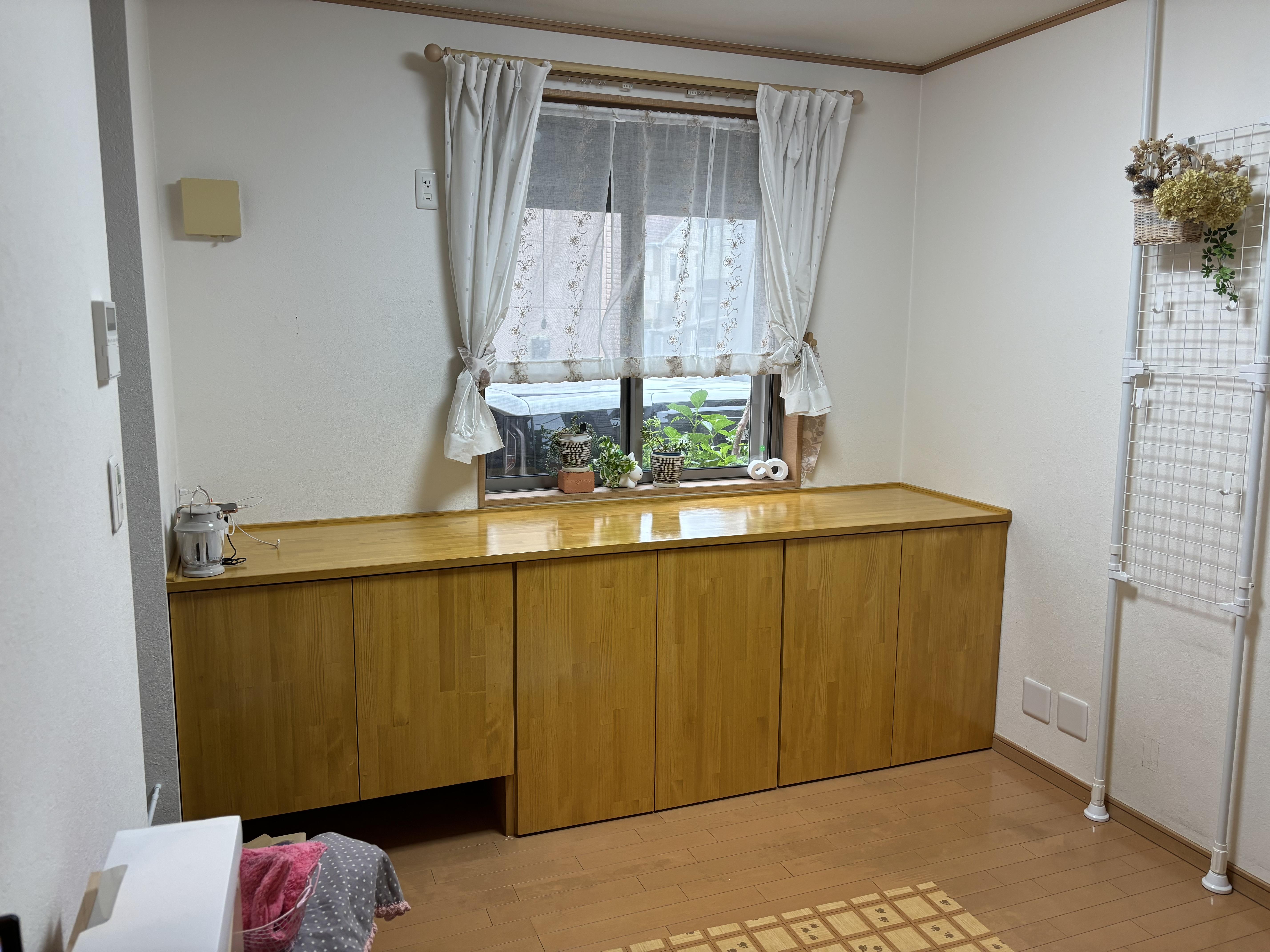◎今回はリビングキャビネットを造作し、設置しました!! お客様の要望を全て叶えたフルオーダーのキャビネットです! 扉には小さいお子様が怪我をしないよう、取っ手をなくし、中にはルンバ基地やWi-Fiルーターなど置き場も設け、便利で高機能なキャビネットに仕上げました!