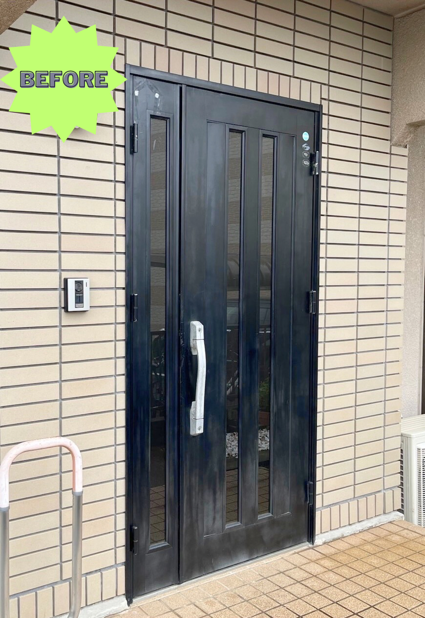 ○今回の玄関ドアのリフォームは、LIXILのリシェントという既存の玄関ドア枠の上に新しいドアを枠ごと取り付けるカバー工法という方法で施工しています!! ○リフォームはたったの1日で完了します! ○大がかりな工事をすることなく、明るく風通しのいい玄関スペースに変えることができます!!
