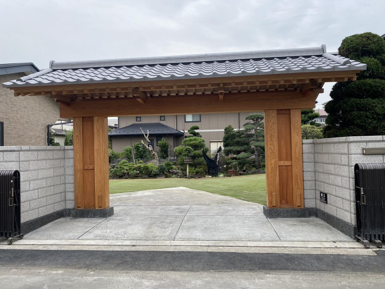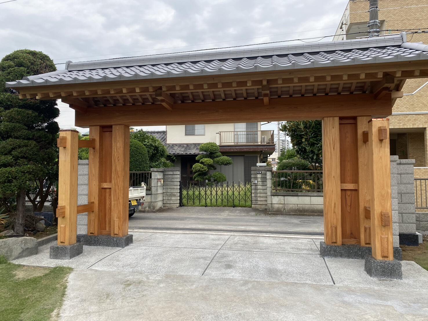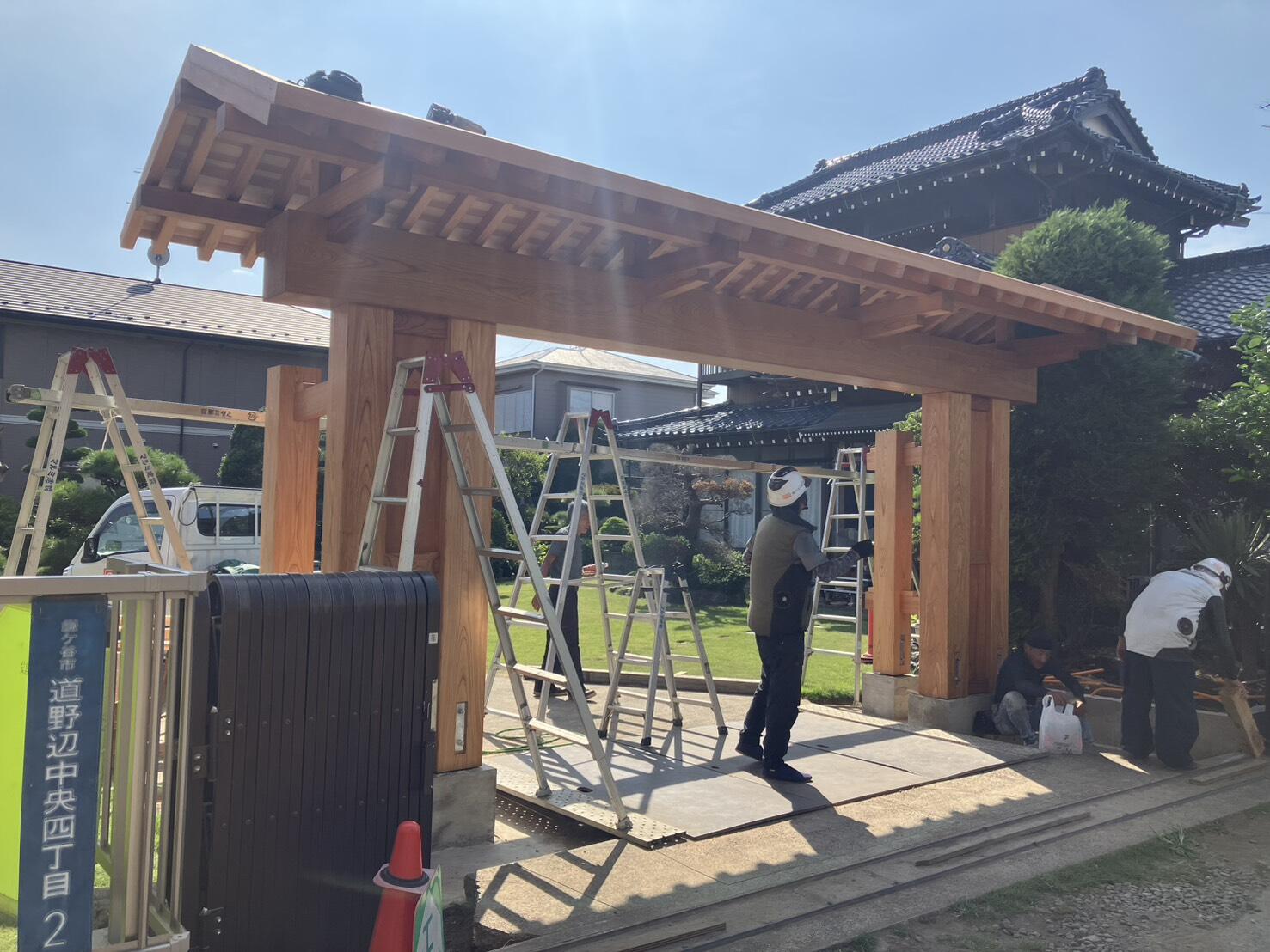 今回の棟門は、欅(けやき)の木を使い、大工の手仕事で製作しています。