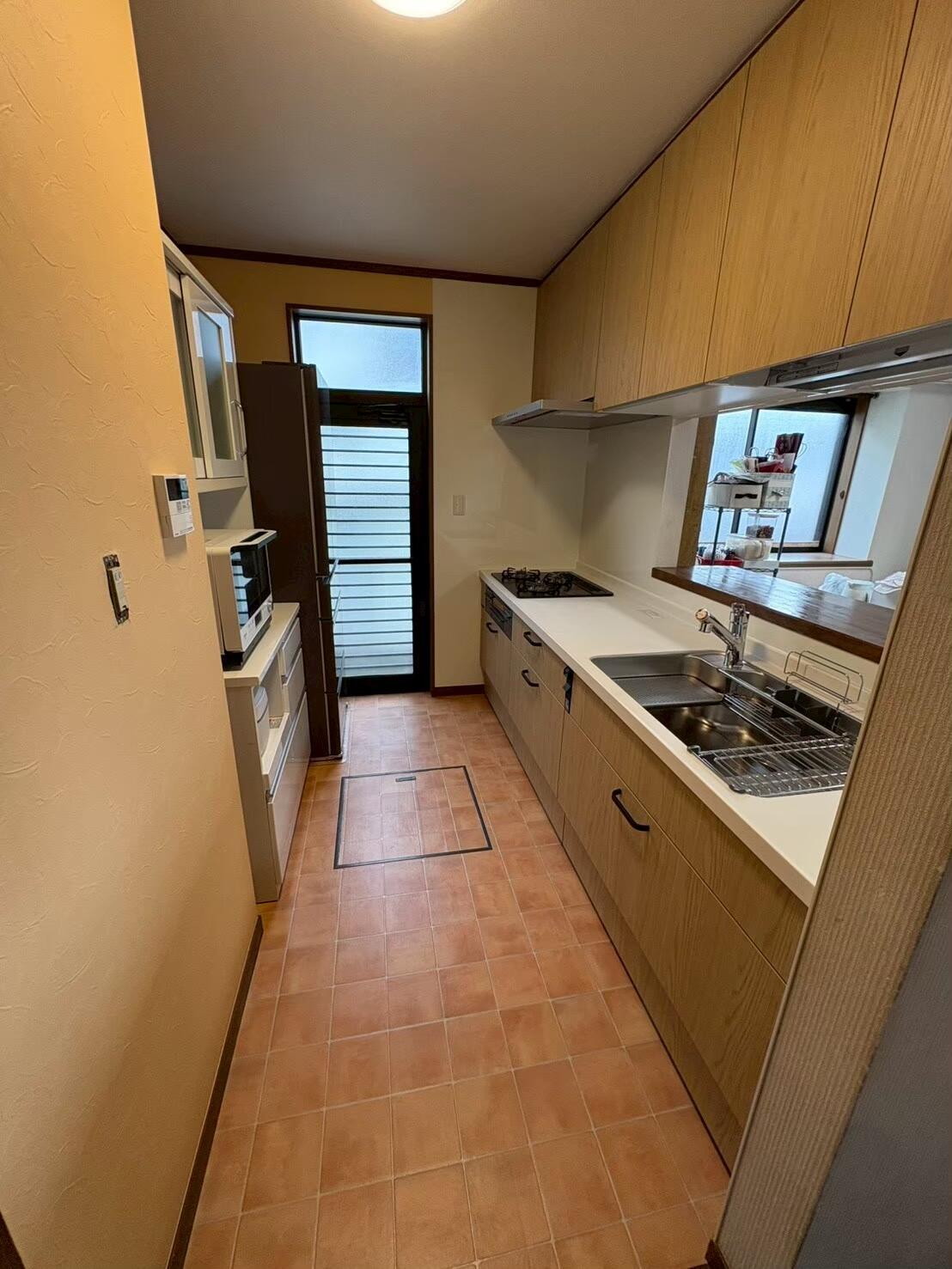 キッチンには、奥様が以前から憧れていらしたテラコッタ調の床材を採用。