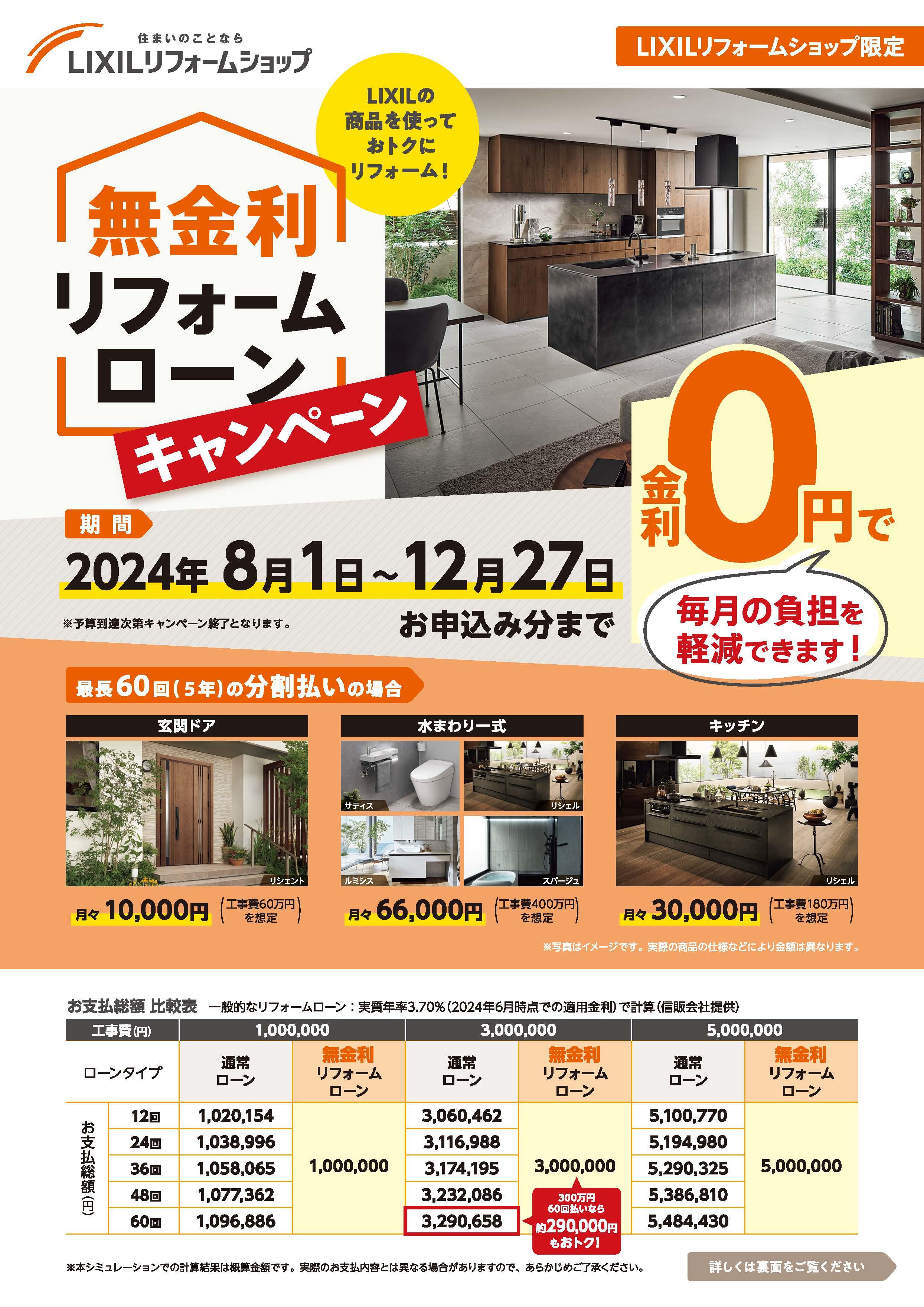 現在、LIXILリフォームショップ限定の『無金利リフォームローンキャンペーン』を開催中です!!