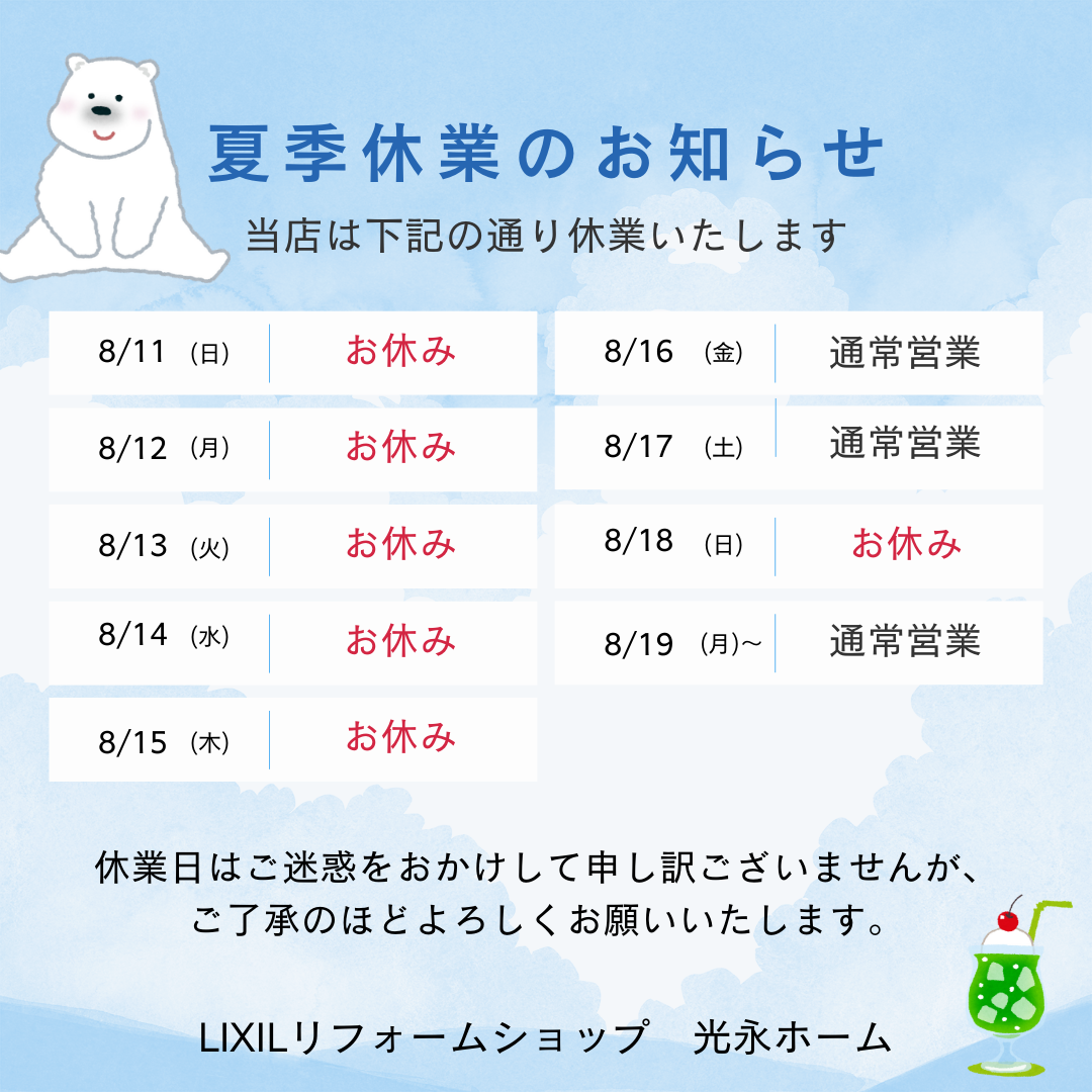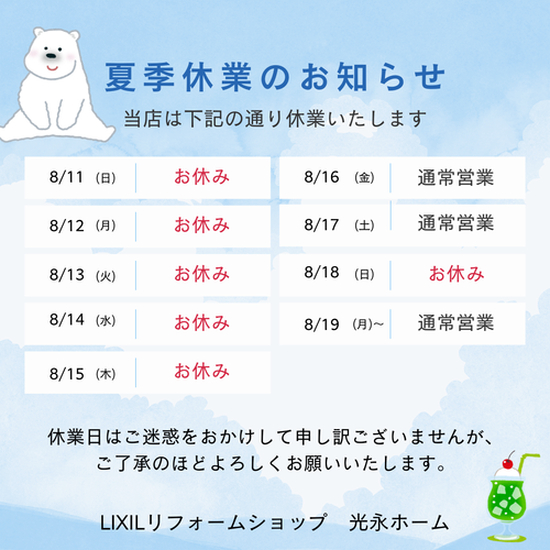 夏季休業のお知らせです。