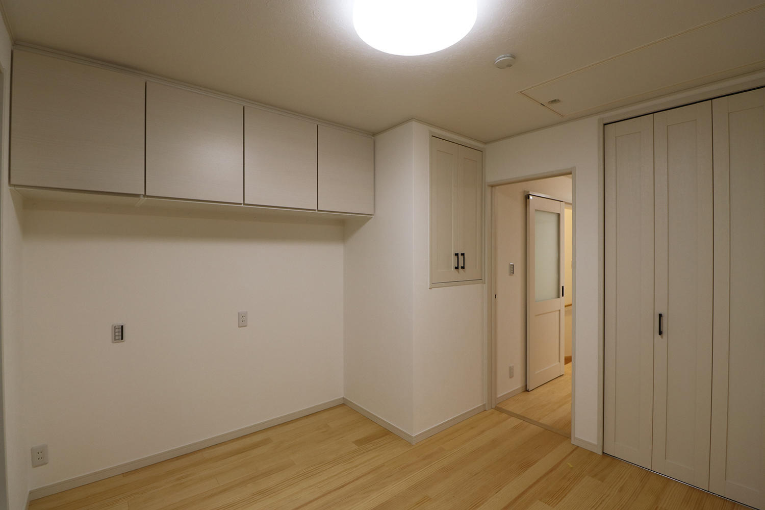 収納スペースもたっぷり!白を基調とした優しい雰囲気の寝室。