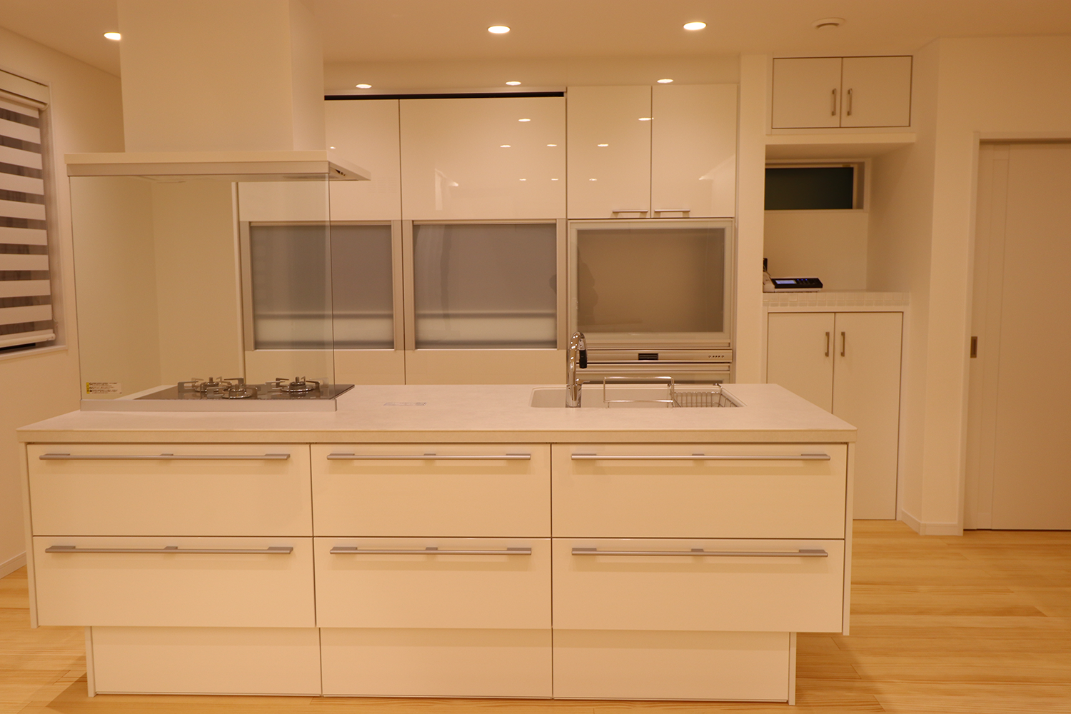 収納たっぷりで使い勝手抜群のキッチン。アイランド型キッチンはLDKを広々とした洗練された空間に。料理中もコミュニケーションが取りやすく、家族の会話も弾み、毎日のお料理が楽しくなります!