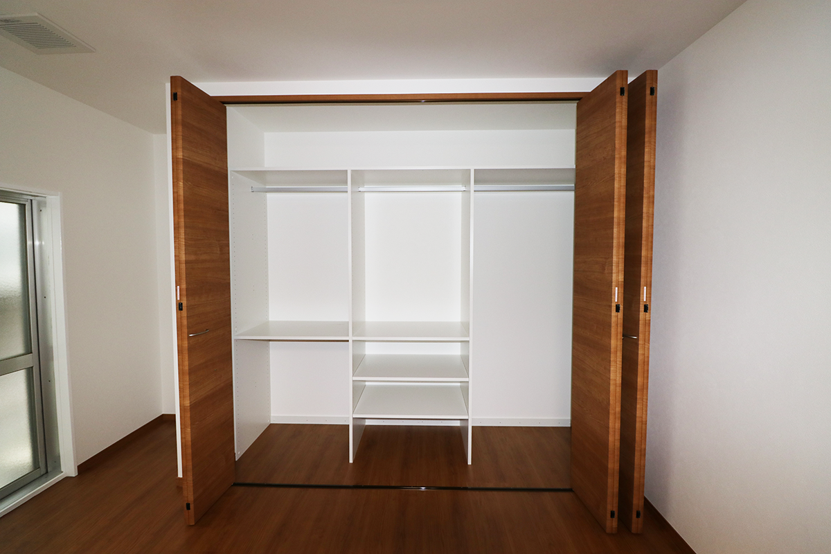 クローゼット型の大容量収納はとてもありがたいですね。家具も設置いらずな程の収納力を発揮してくれそうです。後は急なご来客がある時にも簡単に片付けができそうです。