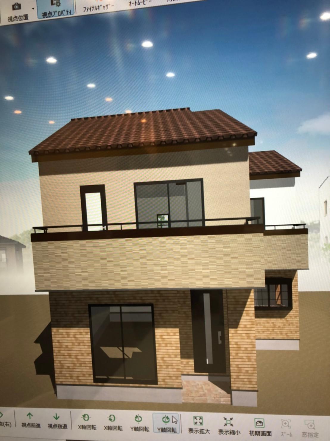 色の見本帳やサンプルは小さくて家全体をイメージするのが難しいので、弊社ショールームのCADで色々な色を試していただきました。